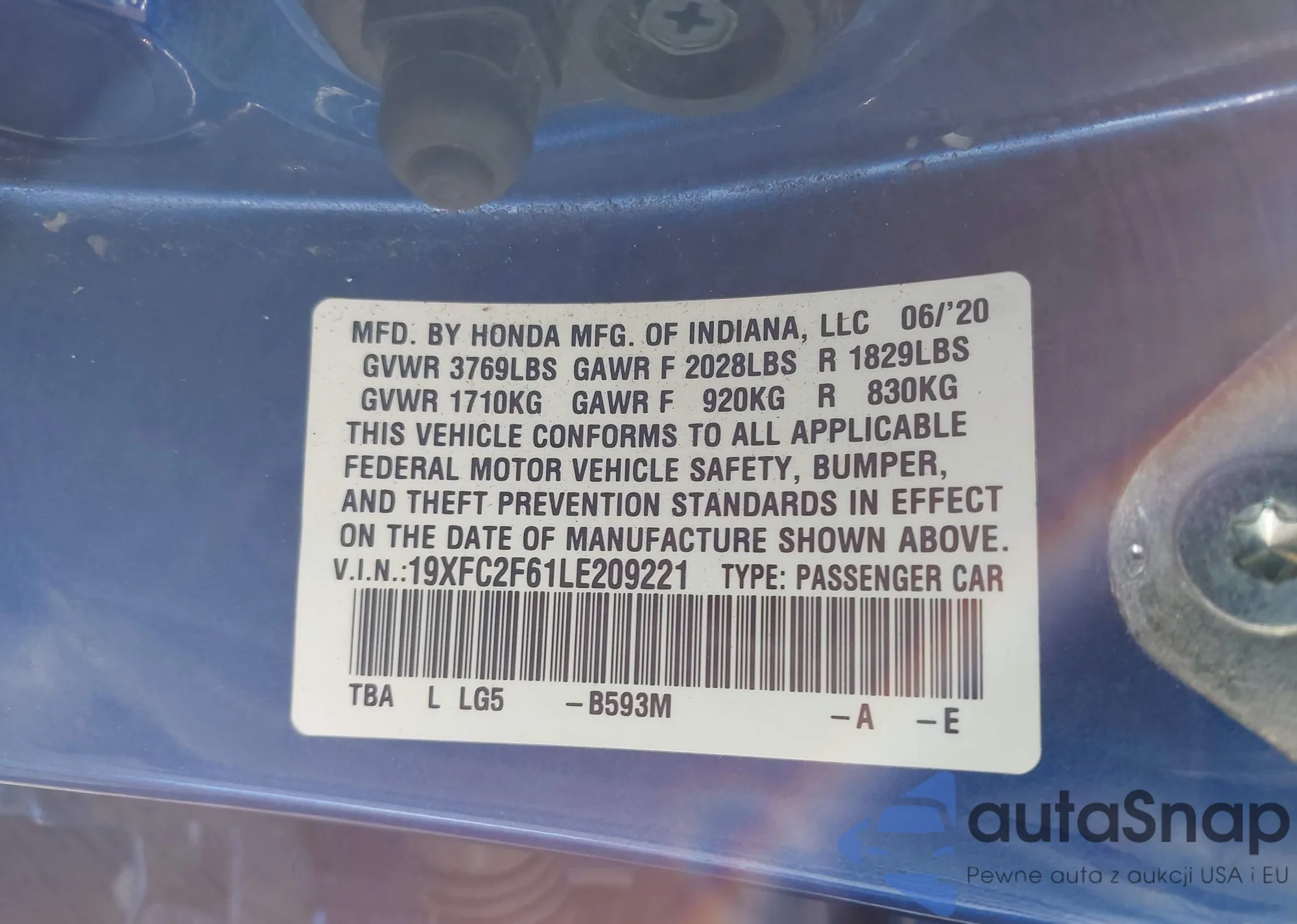 • VIN: 19XFC2F61LE209221