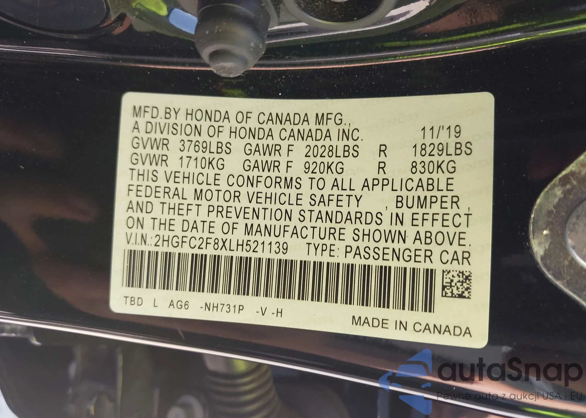 • VIN: 2HGFC2F8XLH521139