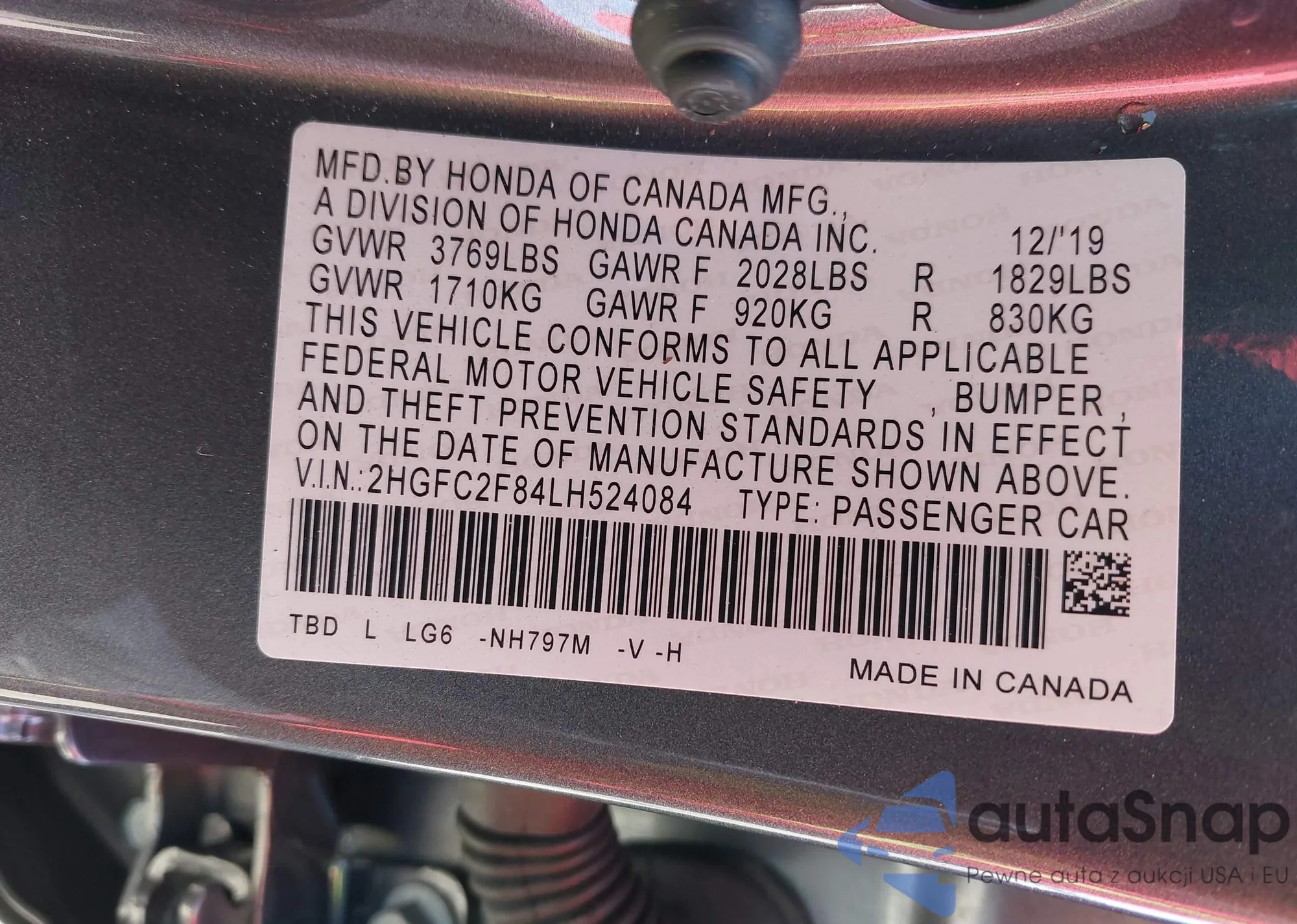 VIN: 2HGFC2F84LH524084