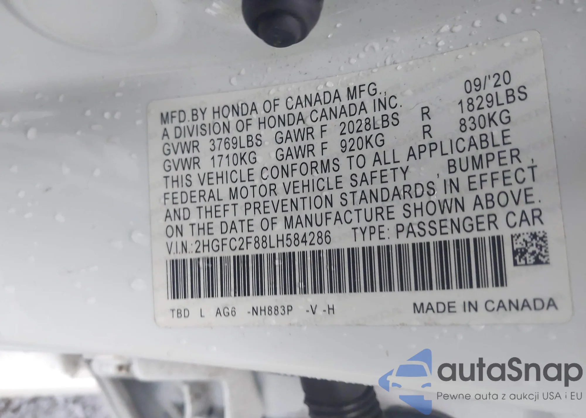 VIN: 2HGFC2F88LH584286
