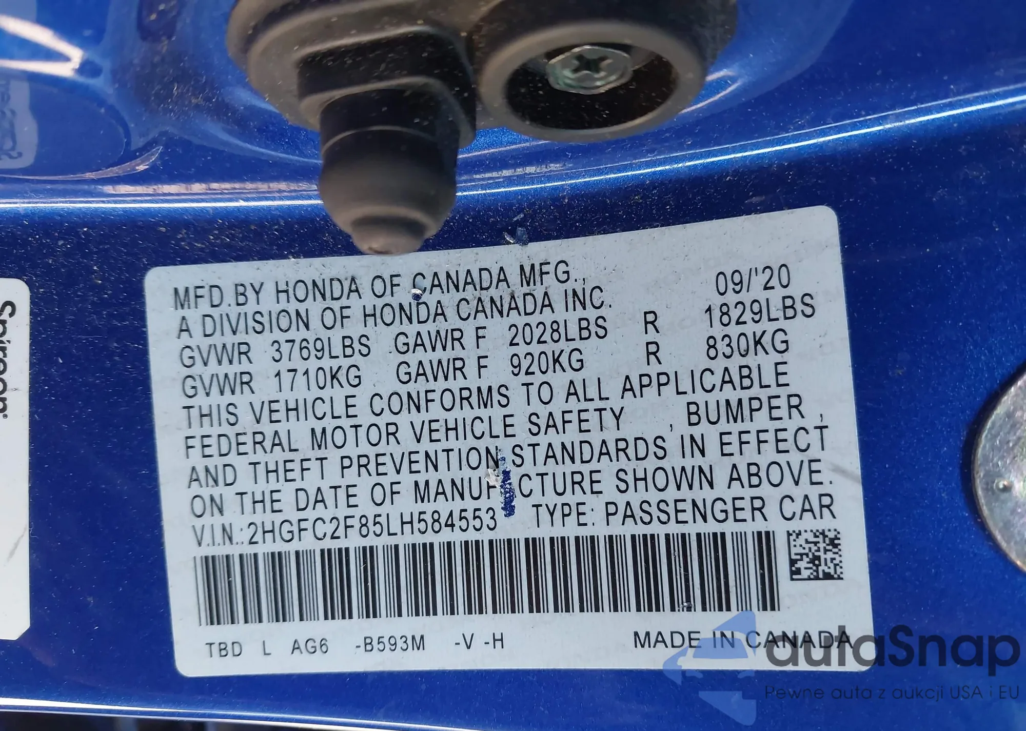 VIN: 2HGFC2F85LH584553