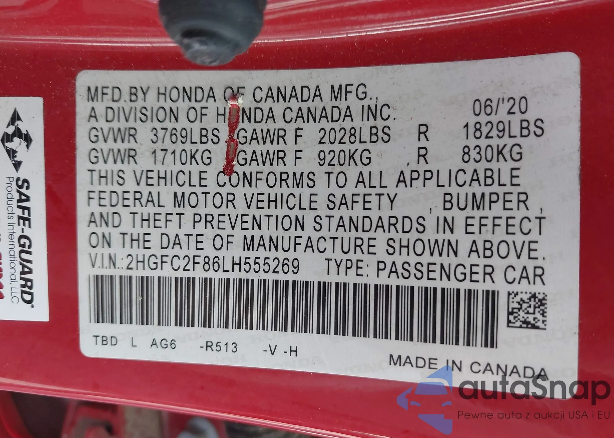 • VIN: 2HGFC2F86LH555269