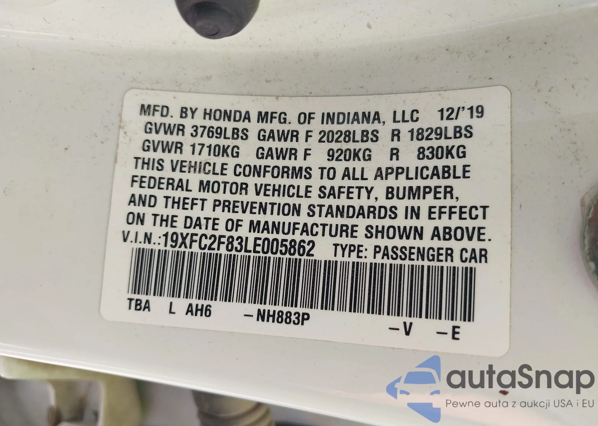 VIN: 19XFC2F83LE005862