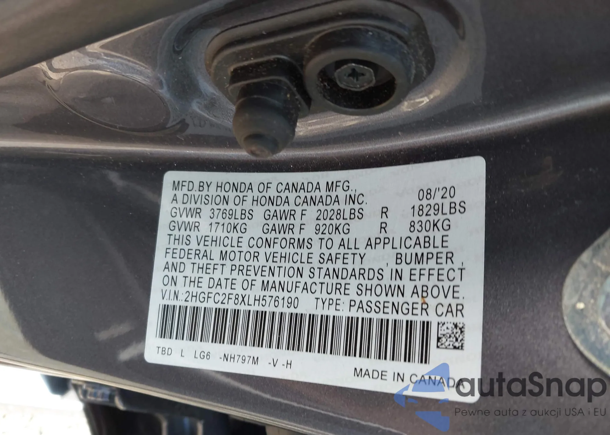 VIN: 2HGFC2F8XLH576190