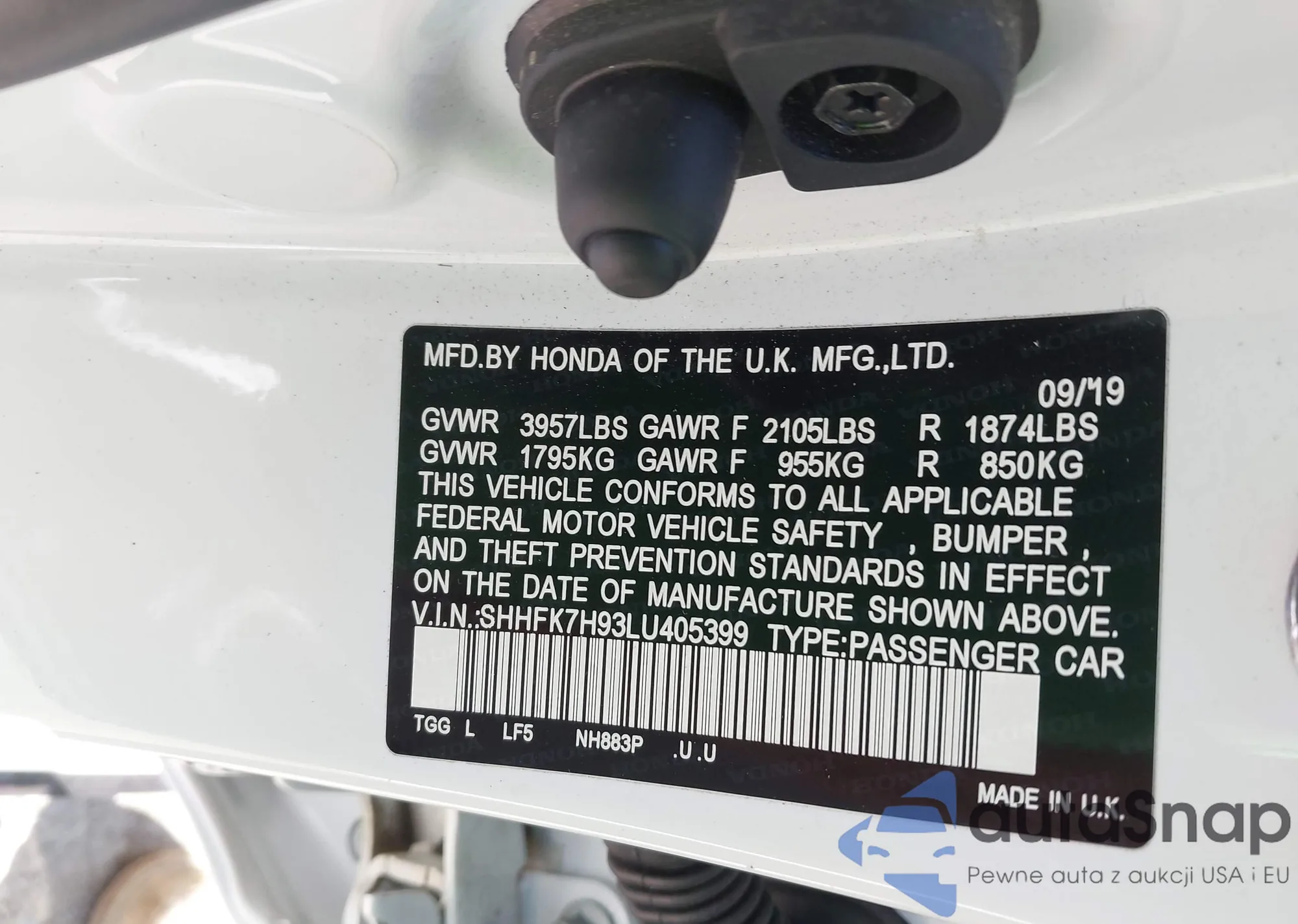 VIN: SHHFK7H93LU405399