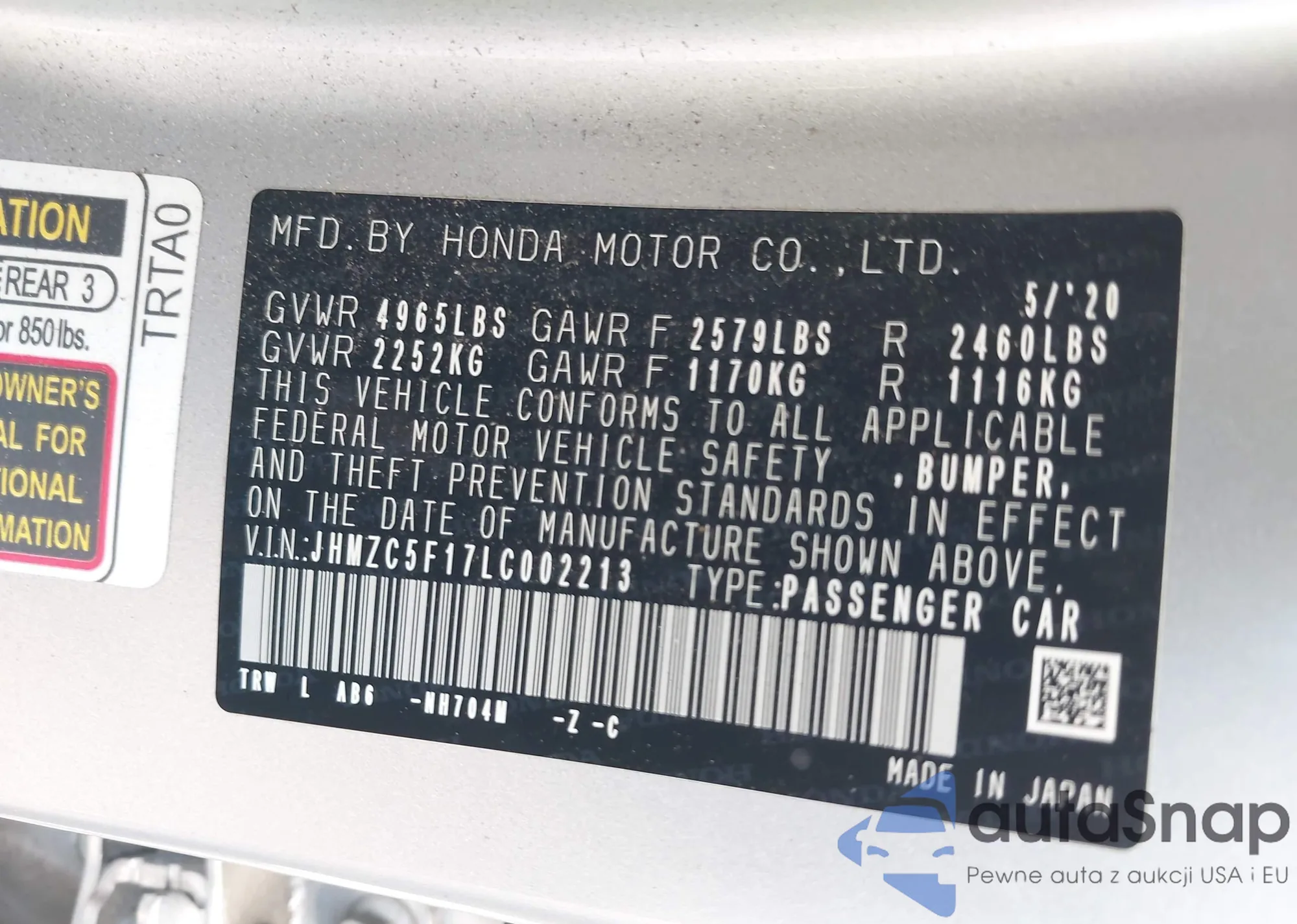 VIN: JHMZC5F17LC002213