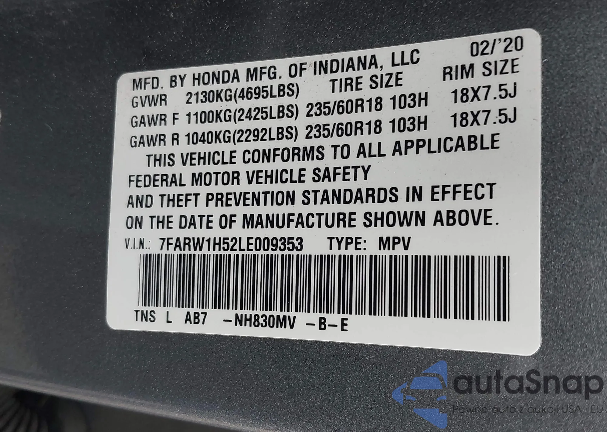 VIN: 7FARW1H52LE009353