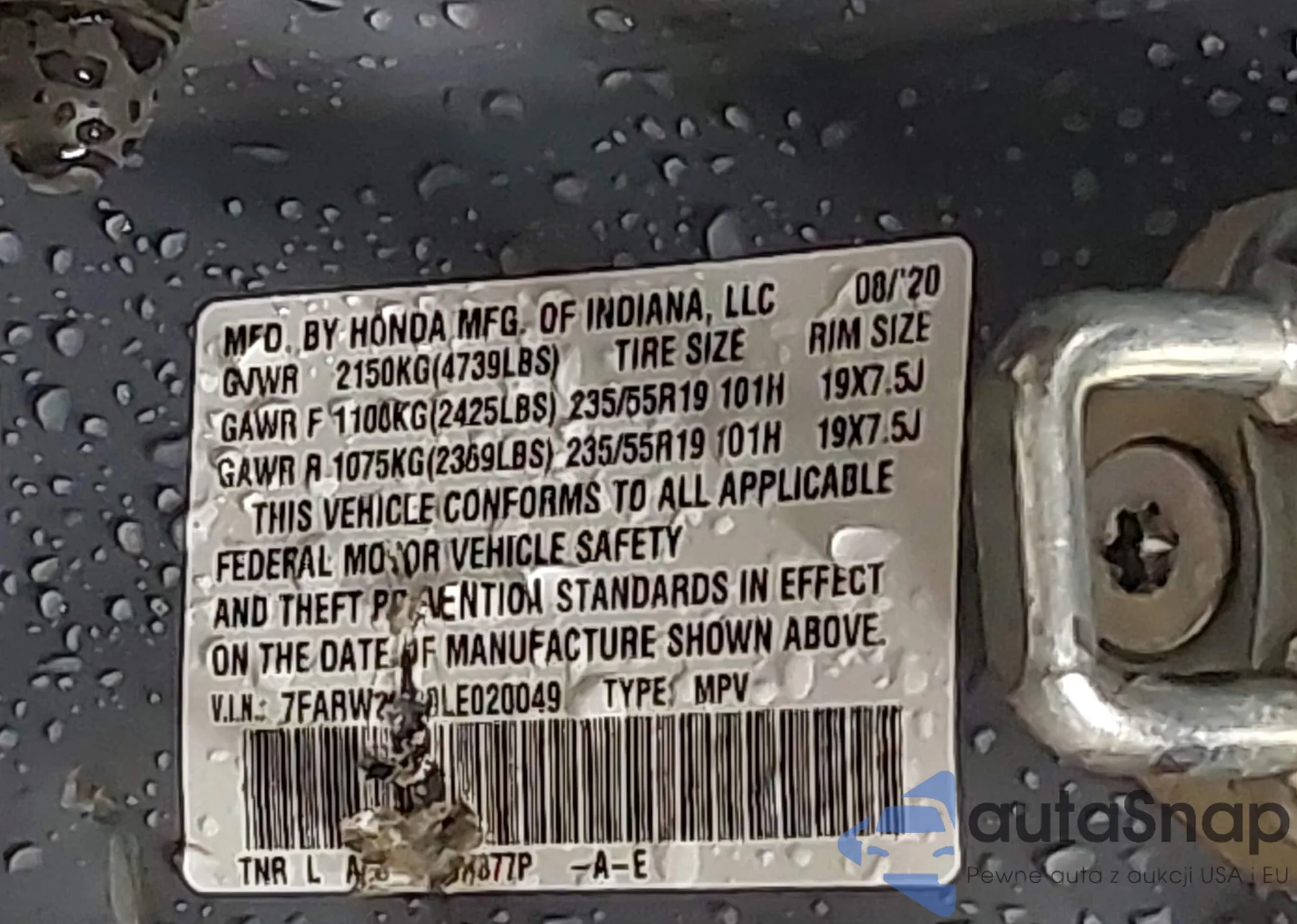 Honda CR-V 2020 – История автомобиля (продан на IAAI)