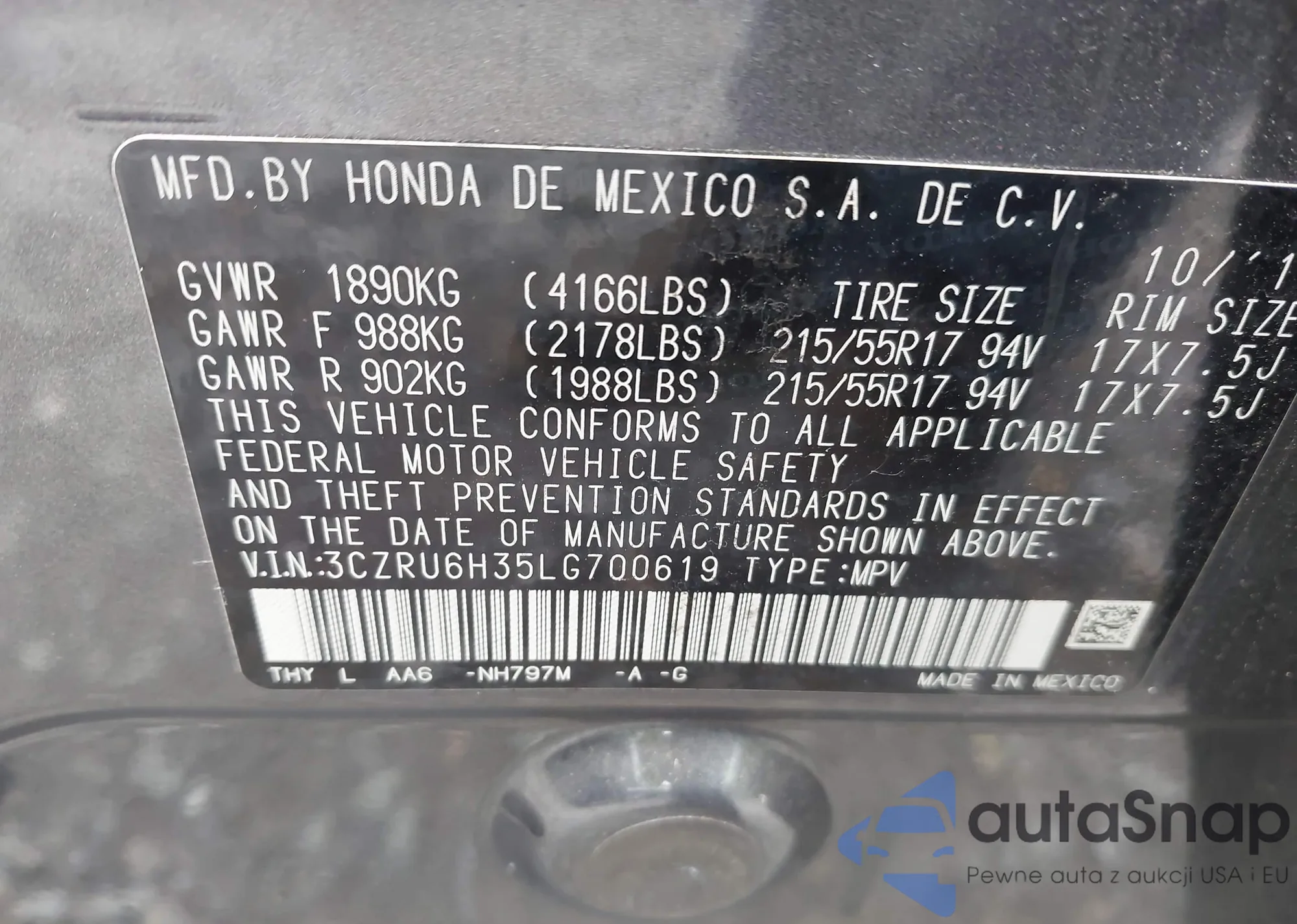 VIN: 3CZRU6H35LG700619