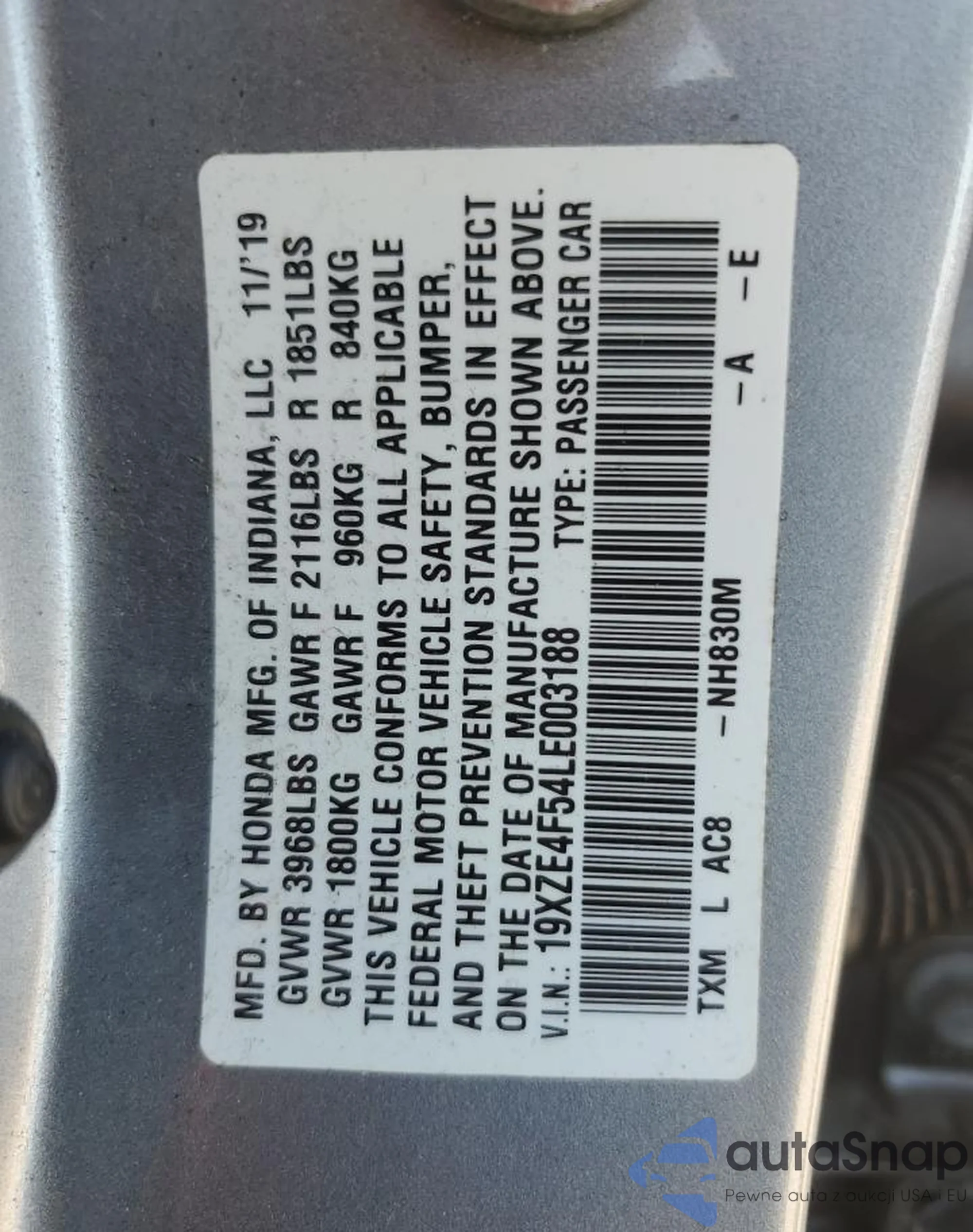 Автомобиль Honda Insight 2020 (VIN 19XZE4F54LE003188) имеет документы, препятствующие регистрации. Могут возникнуть сложности при экспорте и регистрации. Обратитесь к экспертам AutaSnap для поиска альтернатив.