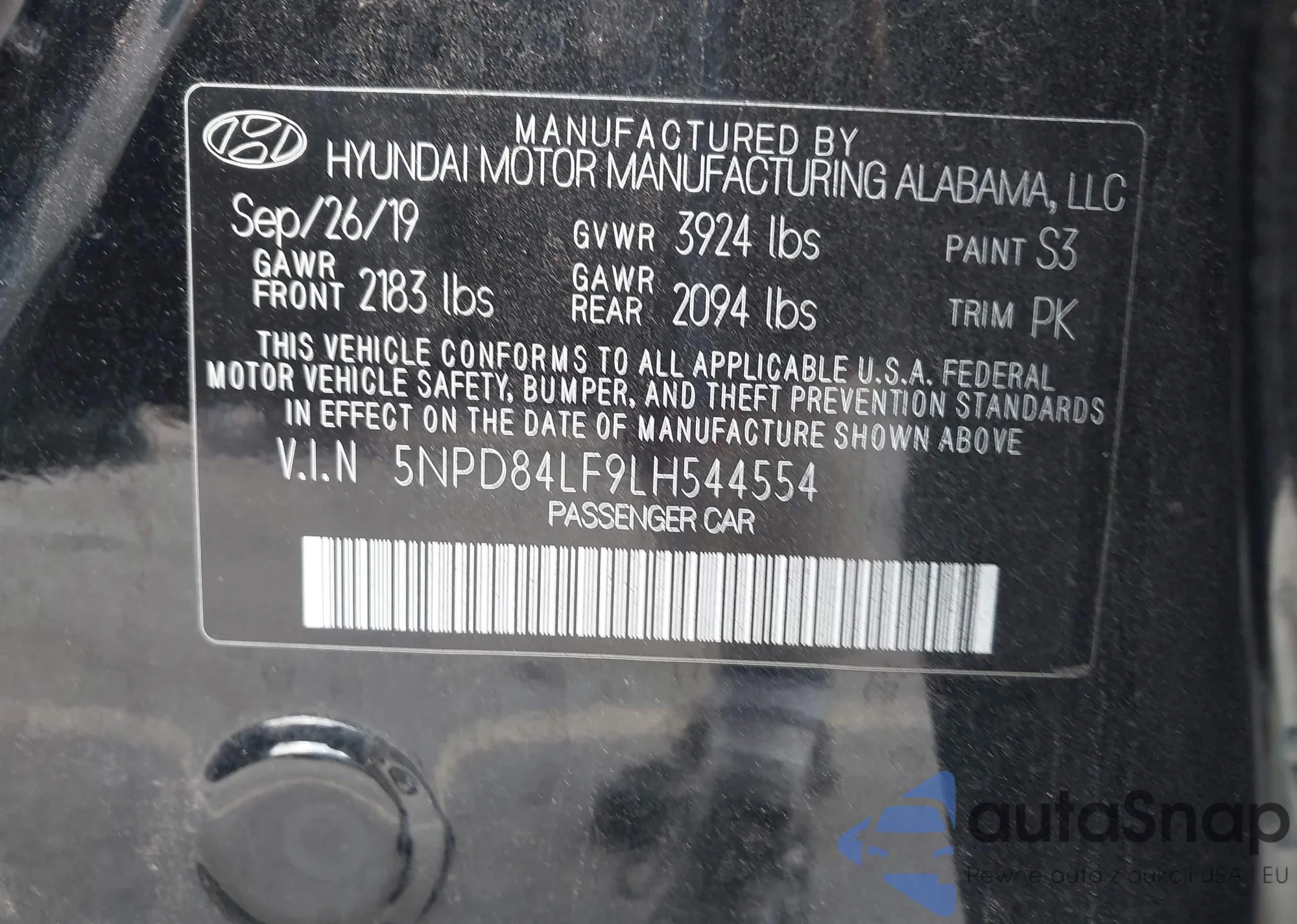 VIN: 5NPD84LF9LH544554