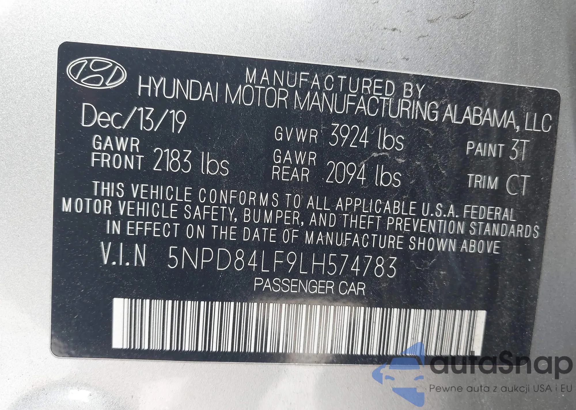 VIN: 5NPD84LF9LH574783