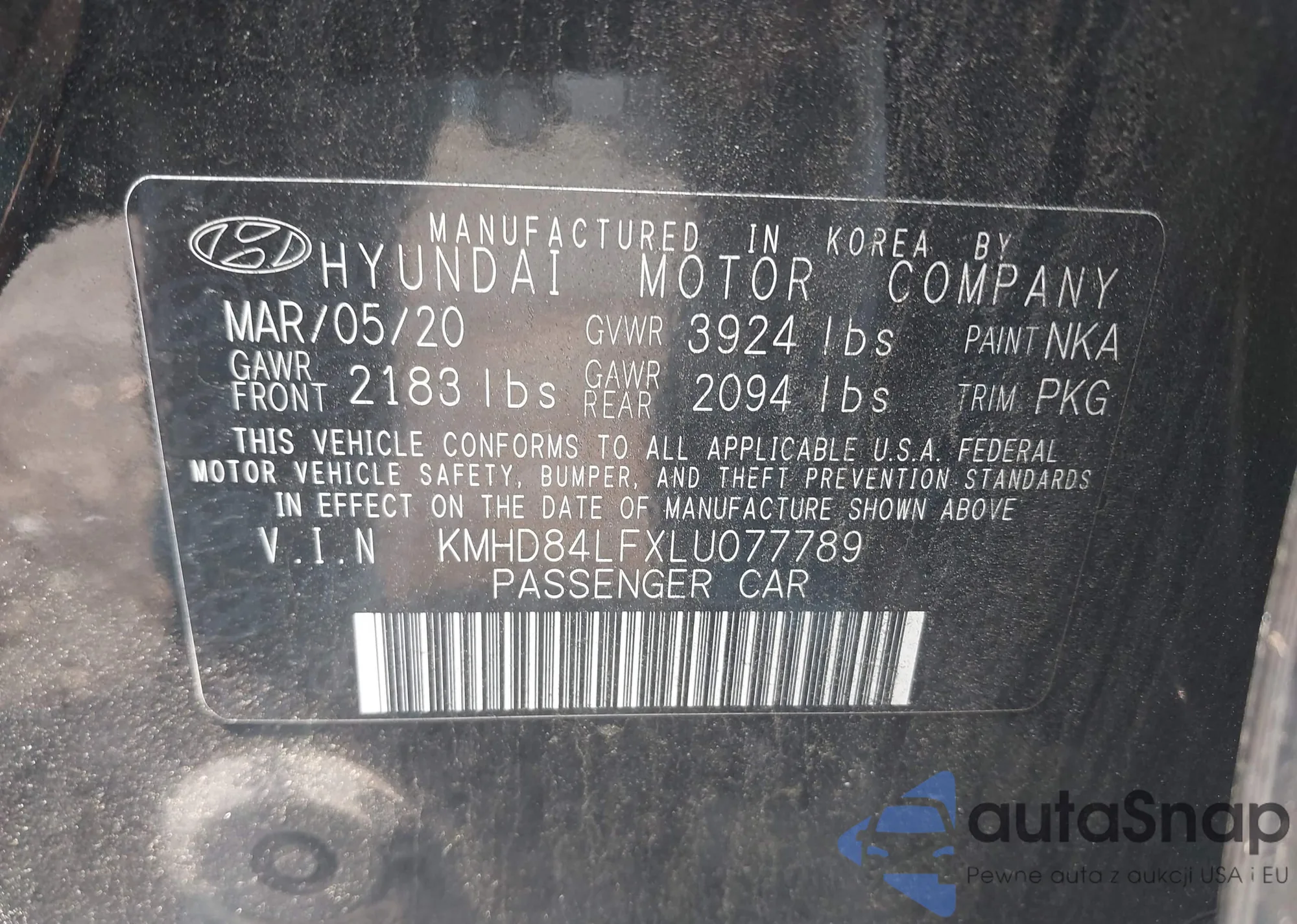 VIN: KMHD84LFXLU077789