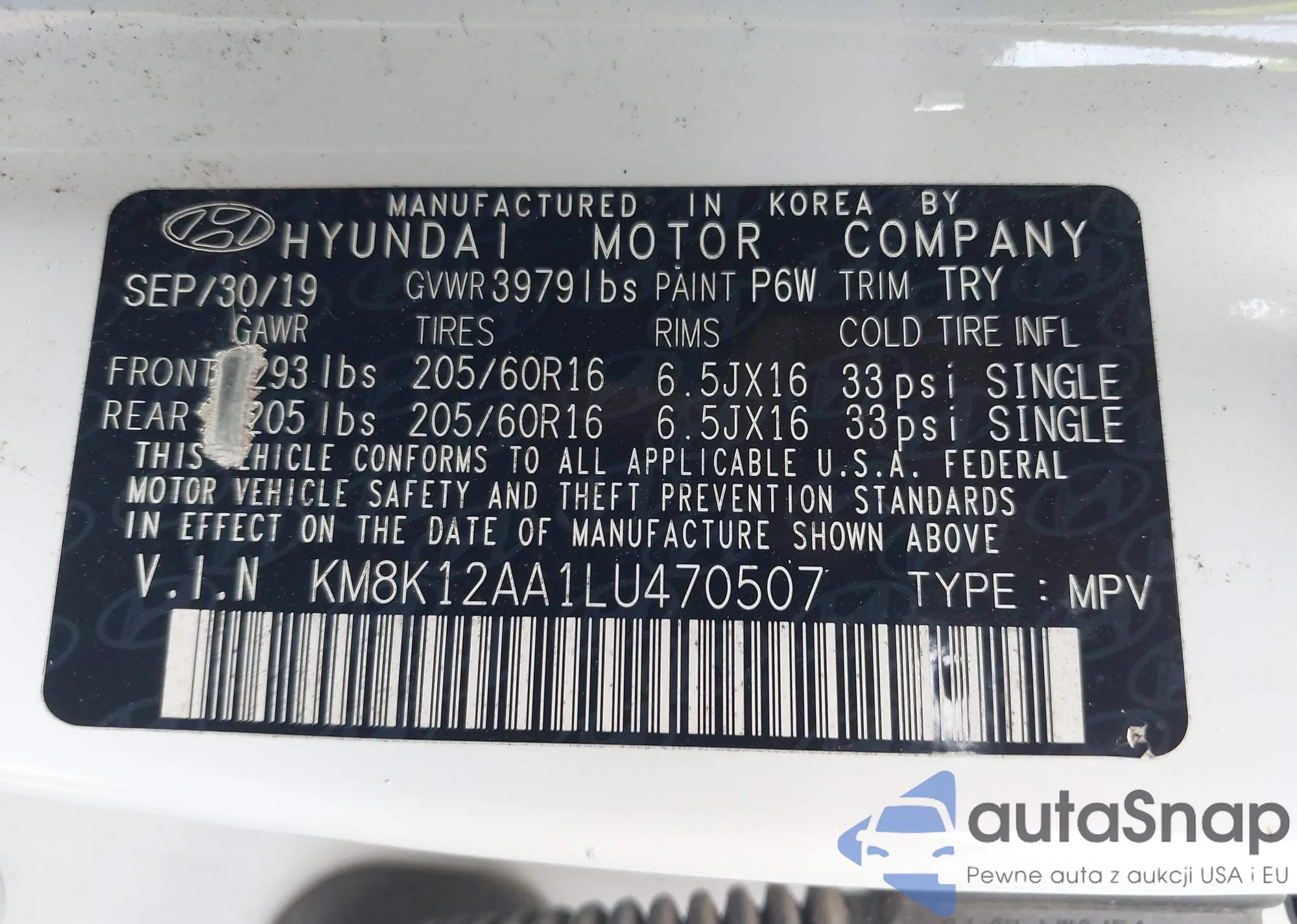 VIN: KM8K12AA1LU470507