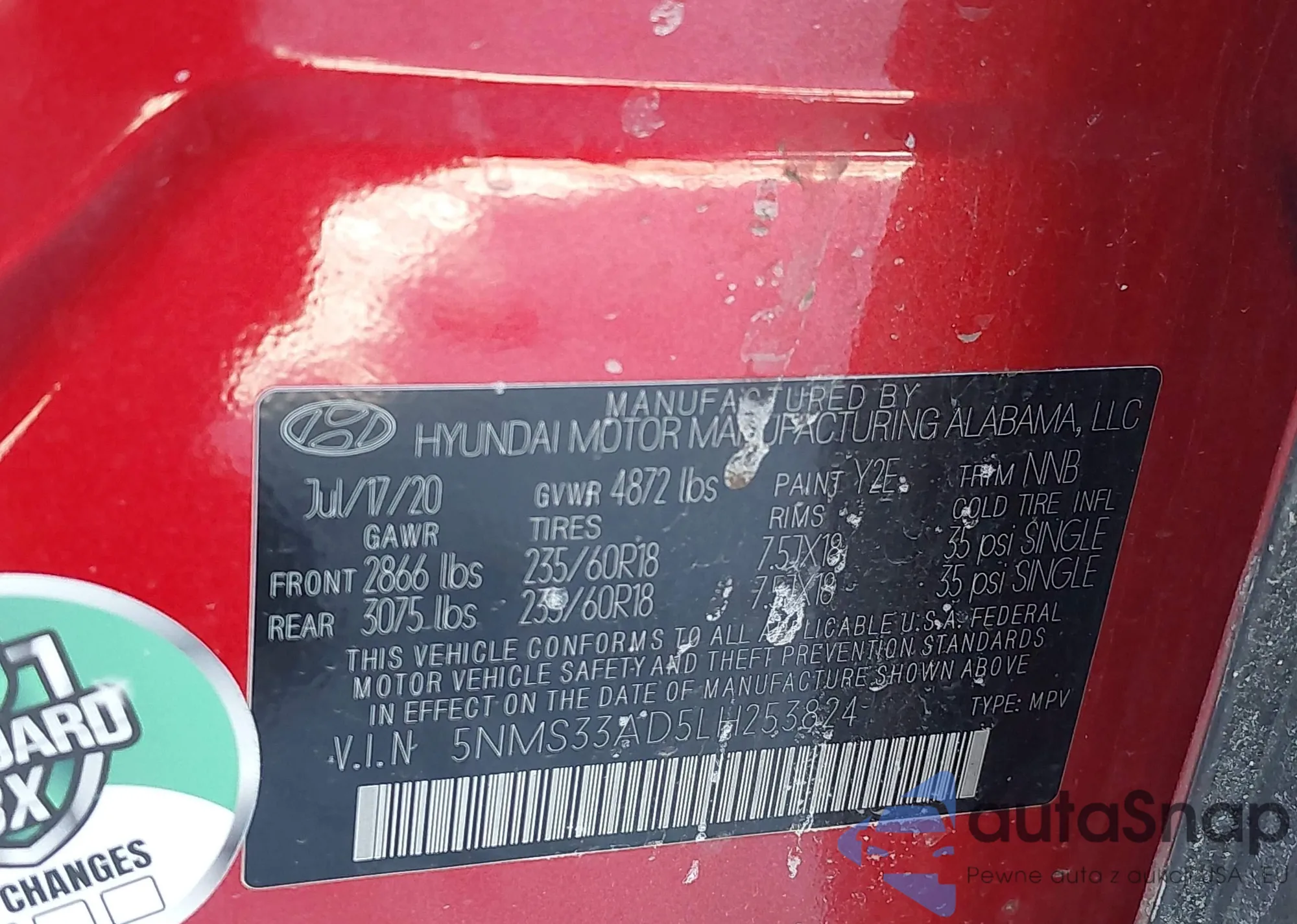 Автомобиль Hyundai Santa Fe 2020 (VIN 5NMS33AD5LH253824) ранее не участвовал в торгах. Документы чистые, пробег соответствует или ниже среднего по рынку. Продаётся страховой компанией — рекомендуем покупку. Доставка в порт займет около 6–8 недель.