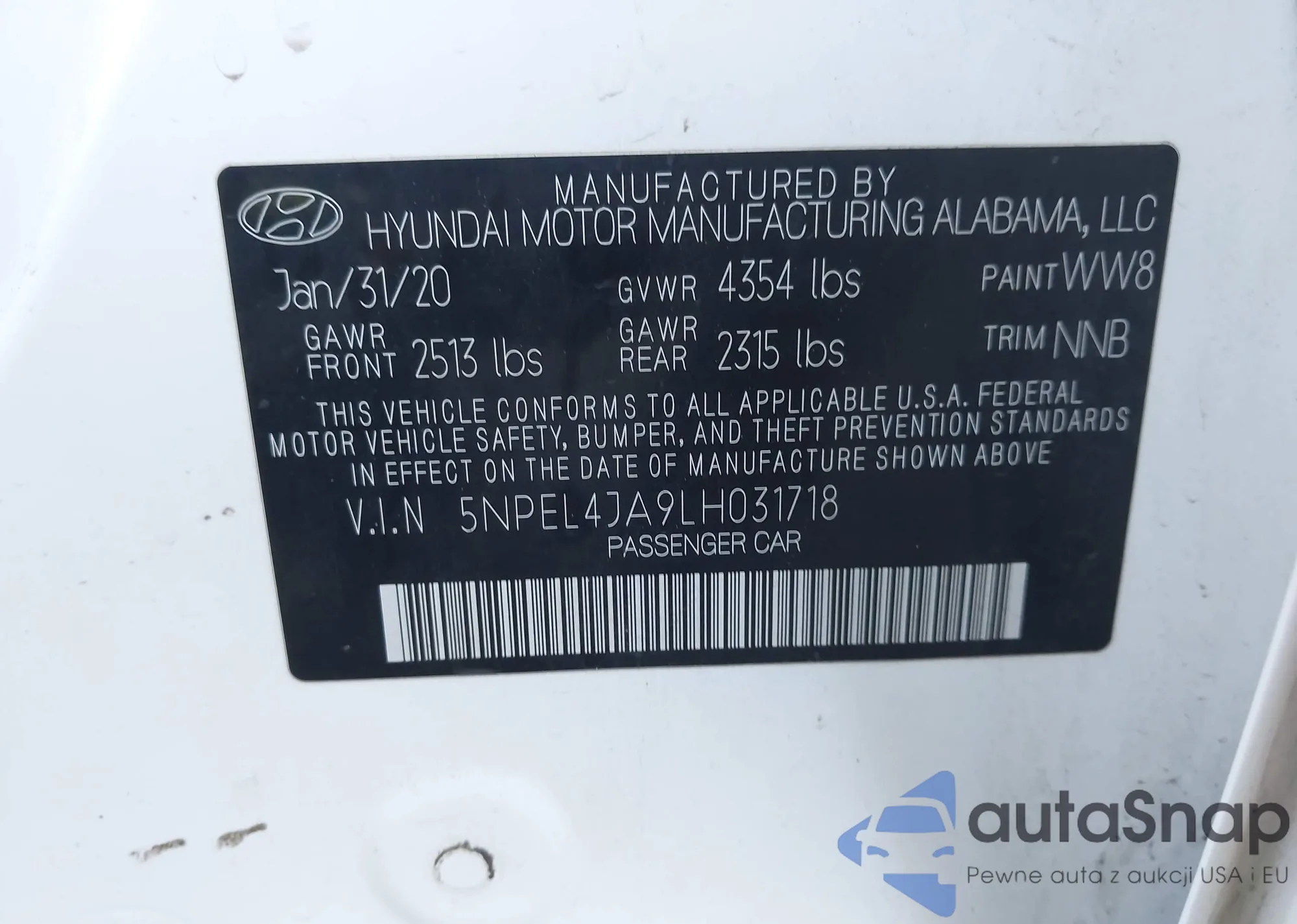 VIN: 5NPEL4JA9LH031718