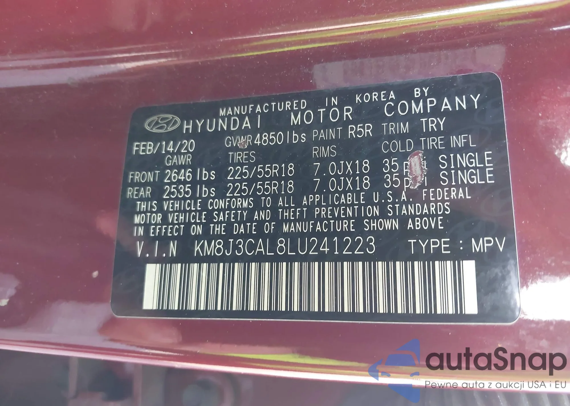 VIN: KM8J3CAL8LU241223