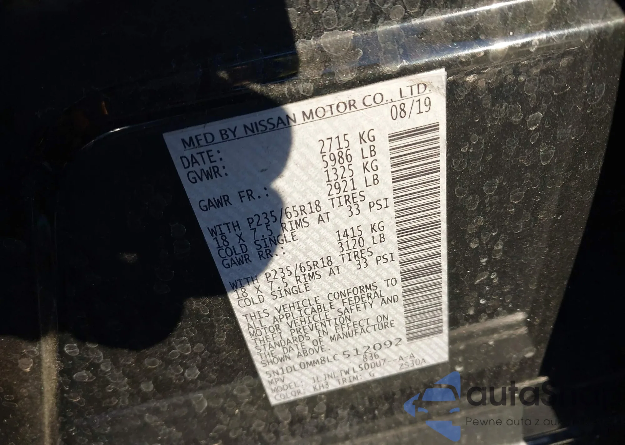 • VIN: 5N1DL0MM8LC512092