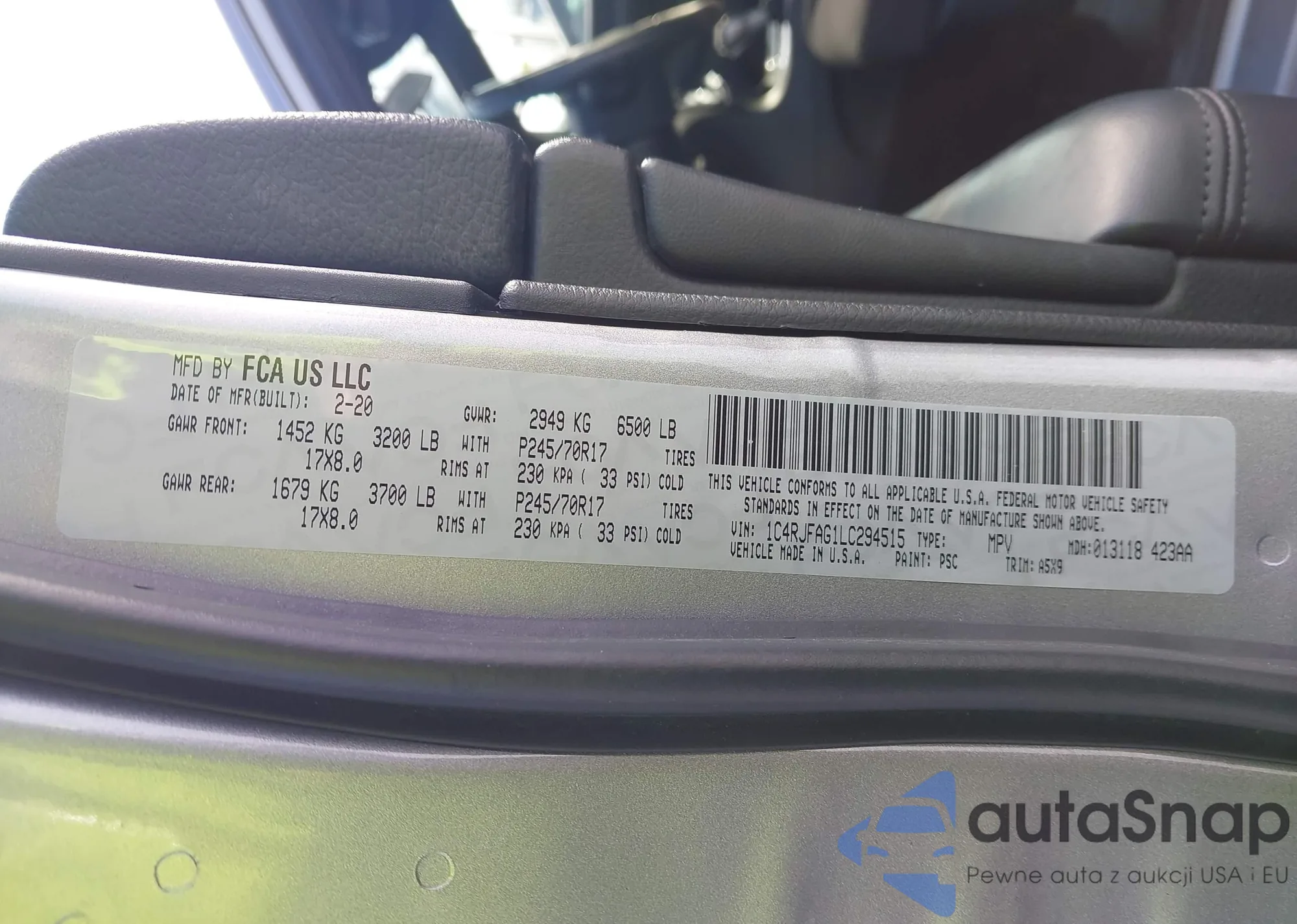 VIN: 1C4RJFAG1LC294515