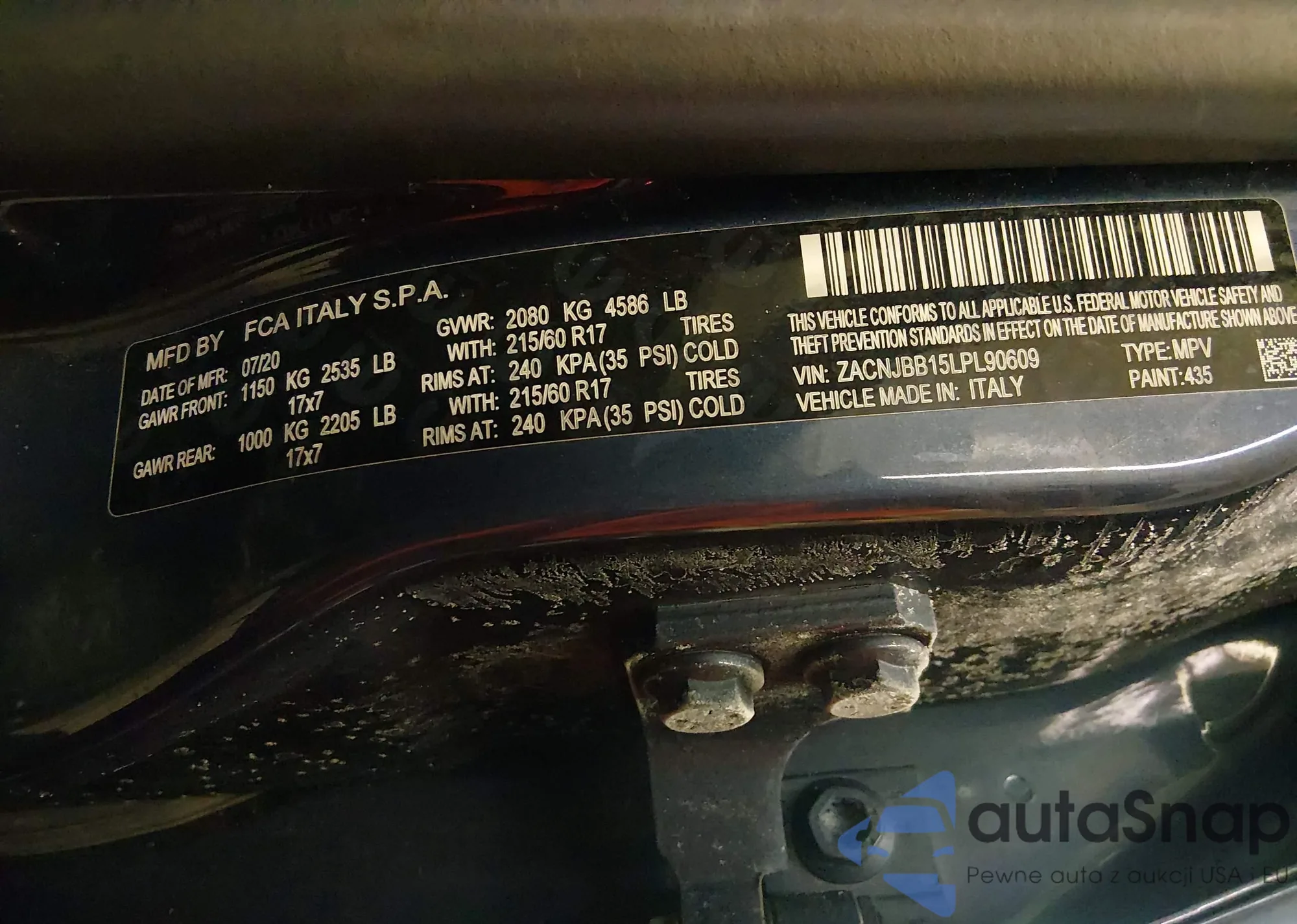 • VIN: ZACNJBB15LPL90609