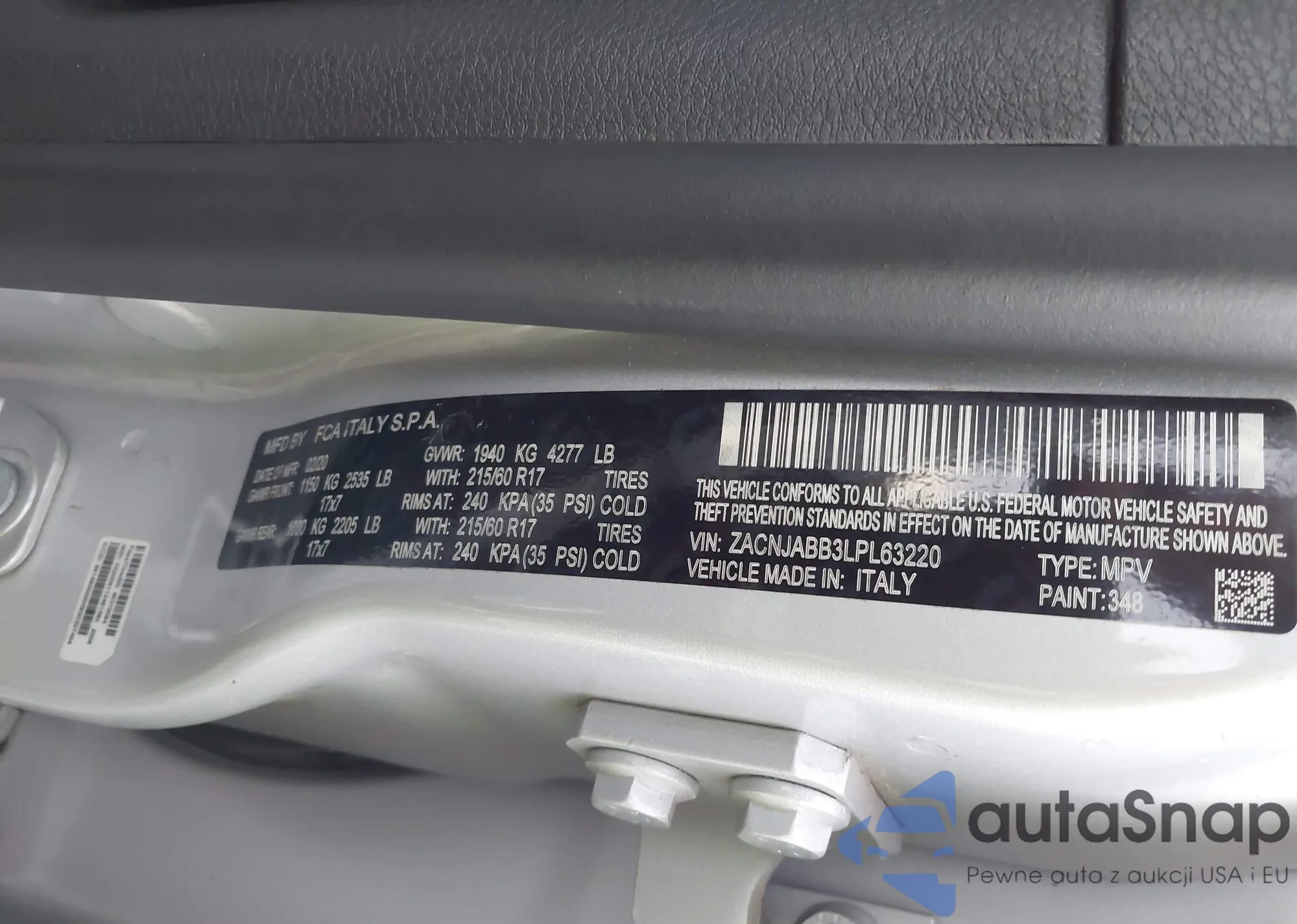 • VIN: ZACNJABB3LPL63220