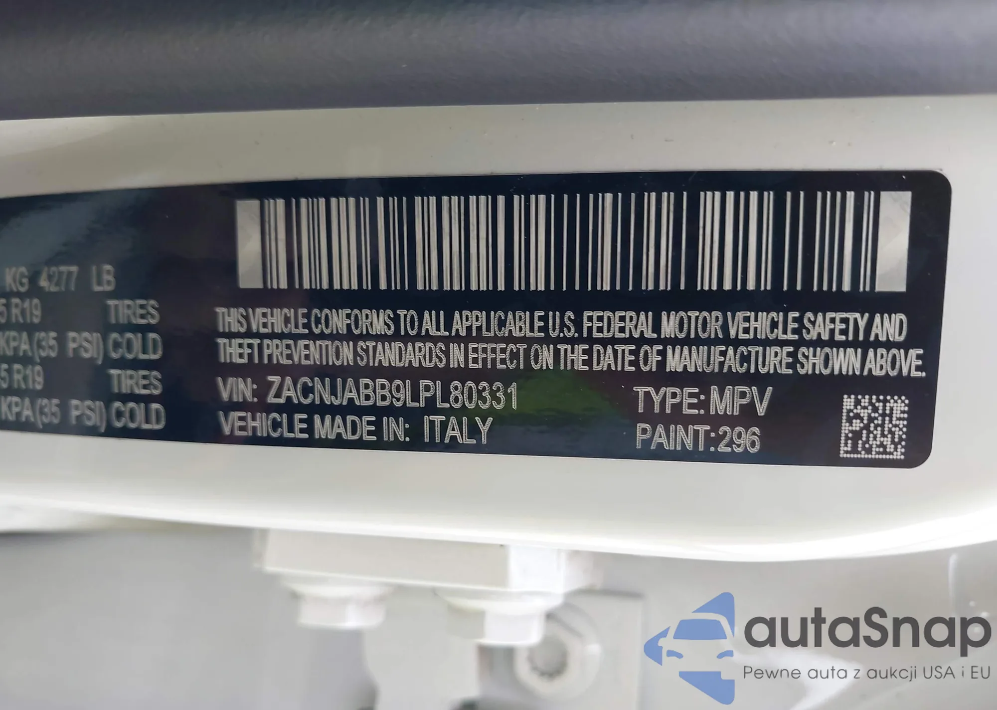 • VIN: ZACNJABB9LPL80331