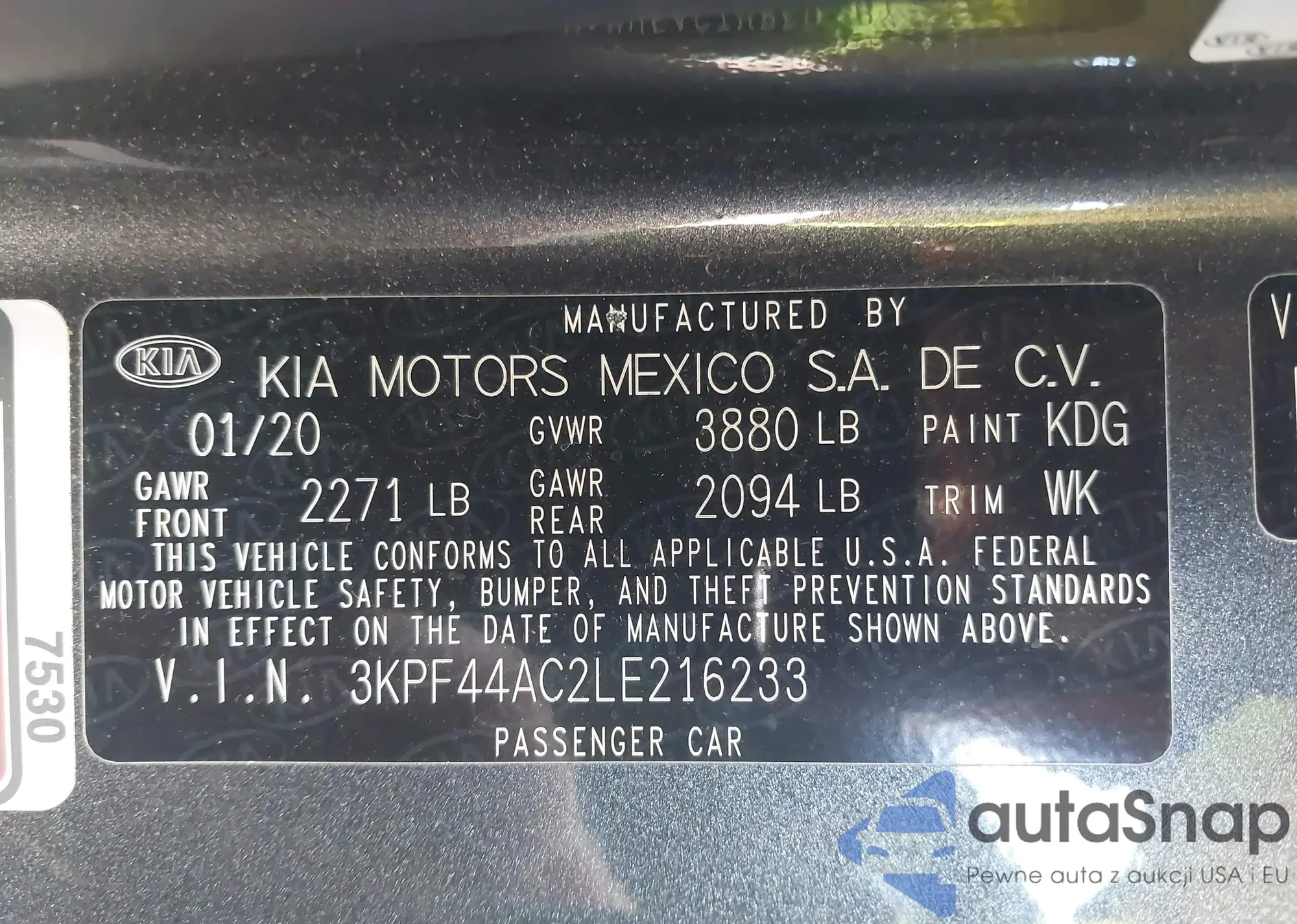 VIN: 3KPF44AC2LE216233