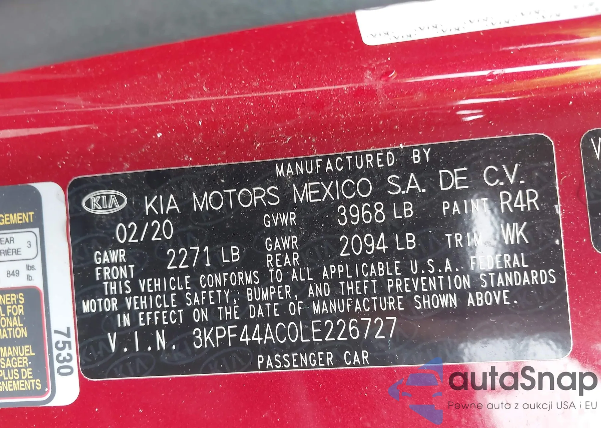 VIN: 3KPF44AC0LE226727