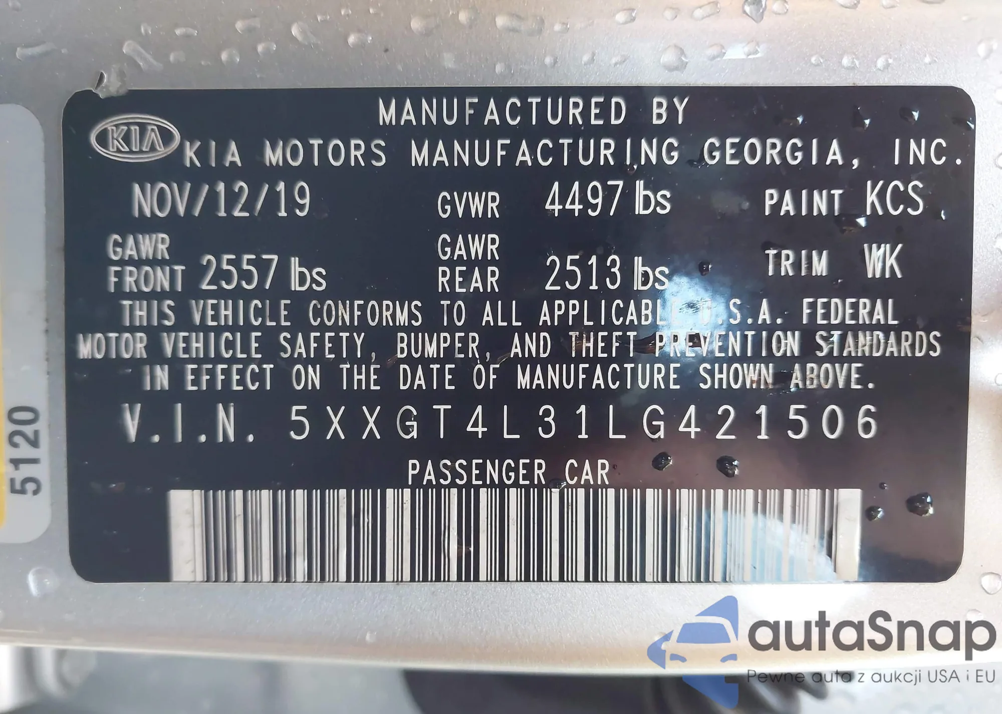 VIN: 5XXGT4L31LG421506