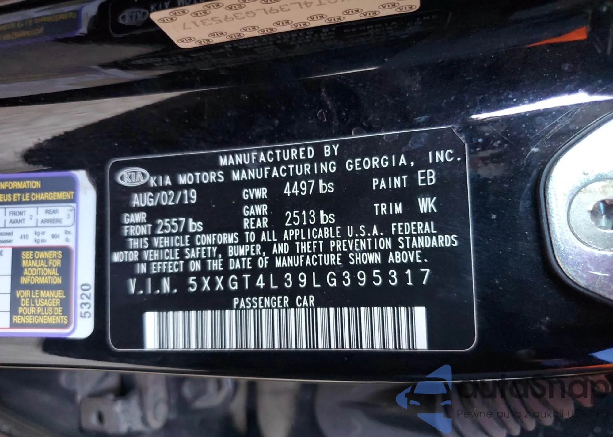 VIN: 5XXGT4L39LG395317