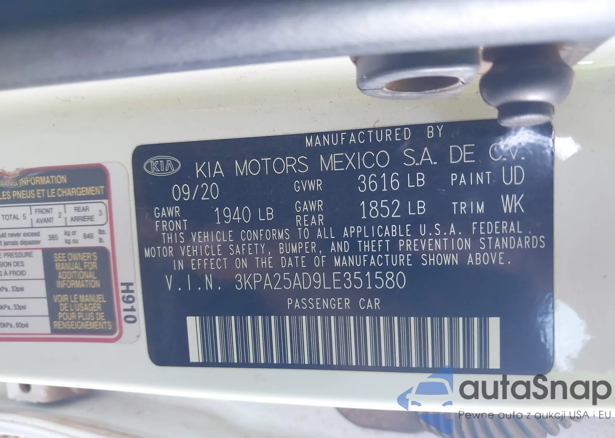 • VIN: 3KPA25AD9LE351580