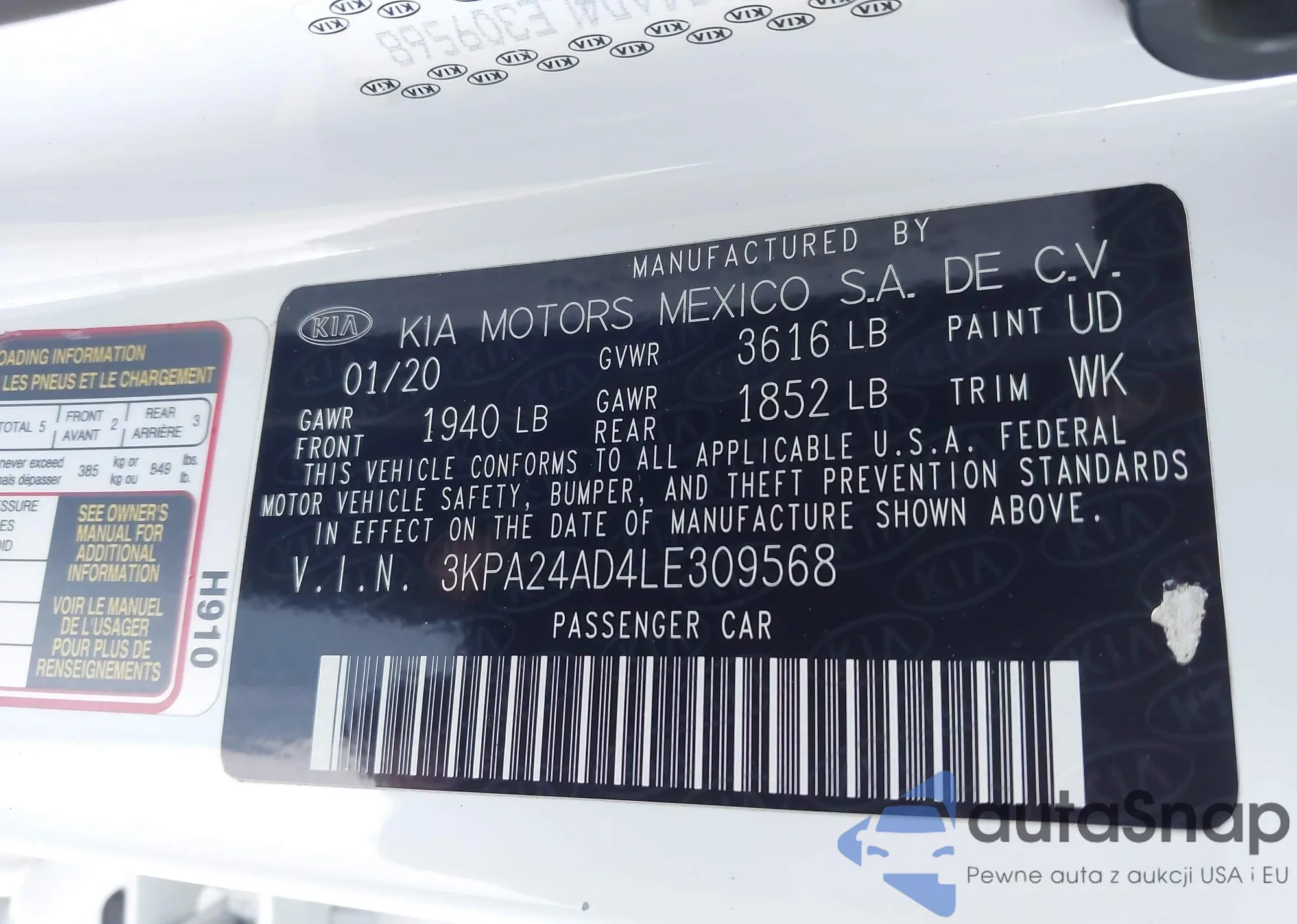 VIN: 3KPA24AD4LE309568