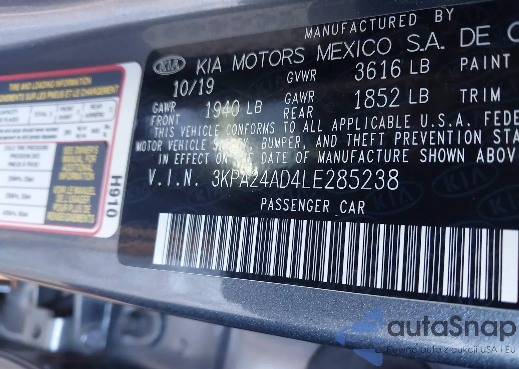 • VIN: 3KPA24AD4LE285238