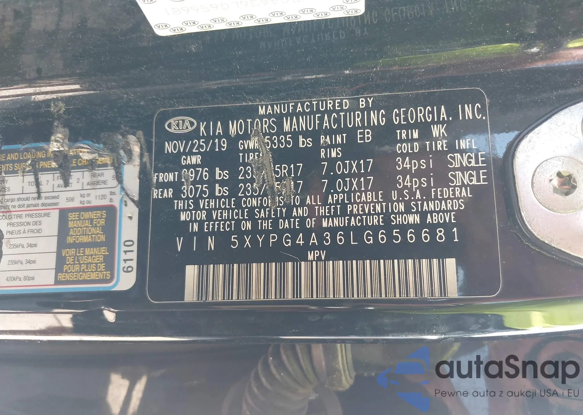 Автомобиль Kia Sorento 2020 (VIN 5XYPG4A36LG656681) ранее не участвовал в торгах. Документы чистые, пробег соответствует или ниже среднего по рынку. Продаётся страховой компанией — рекомендуем покупку. Доставка в порт займет около 6–8 недель.