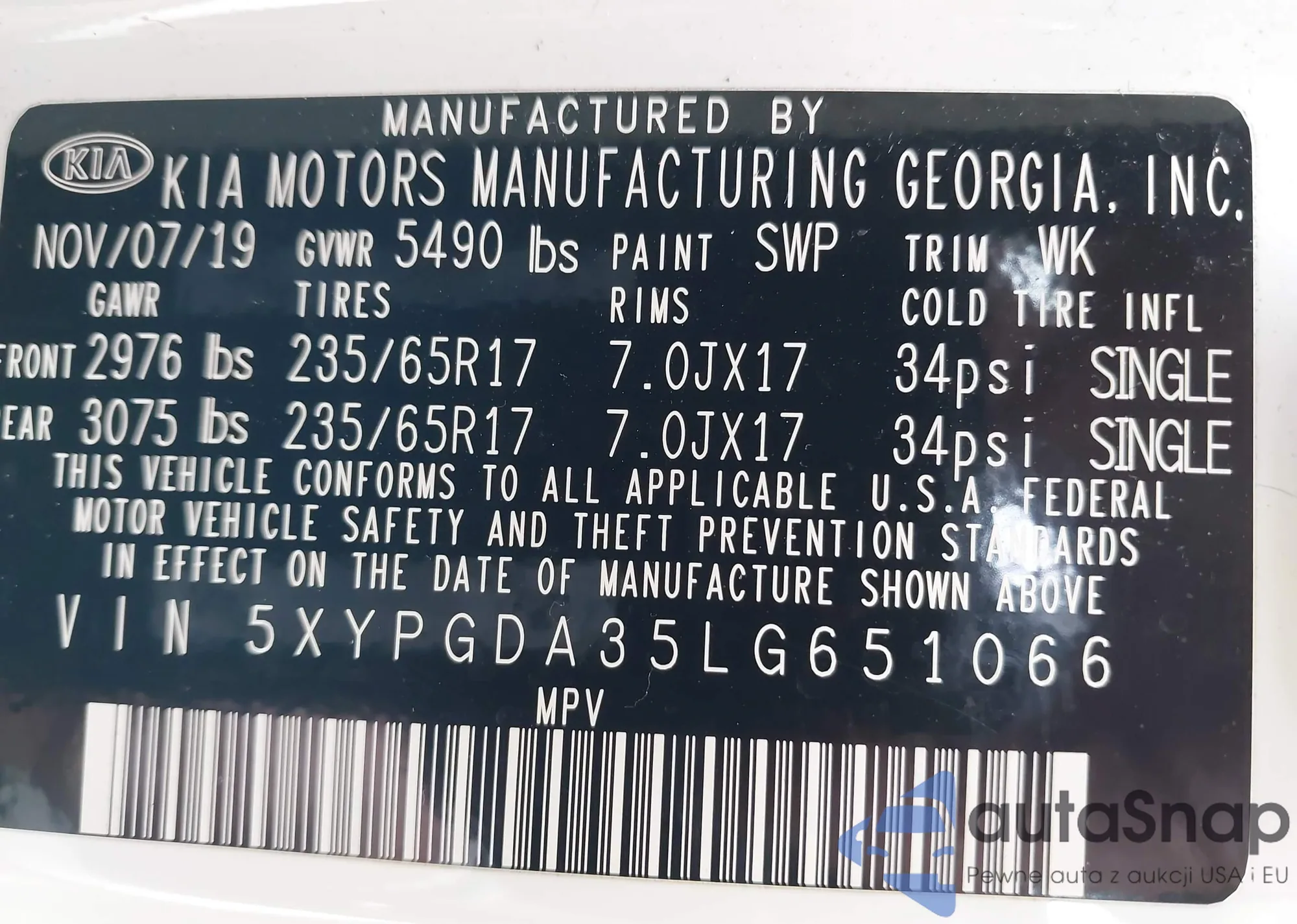 VIN: 5XYPGDA35LG651066