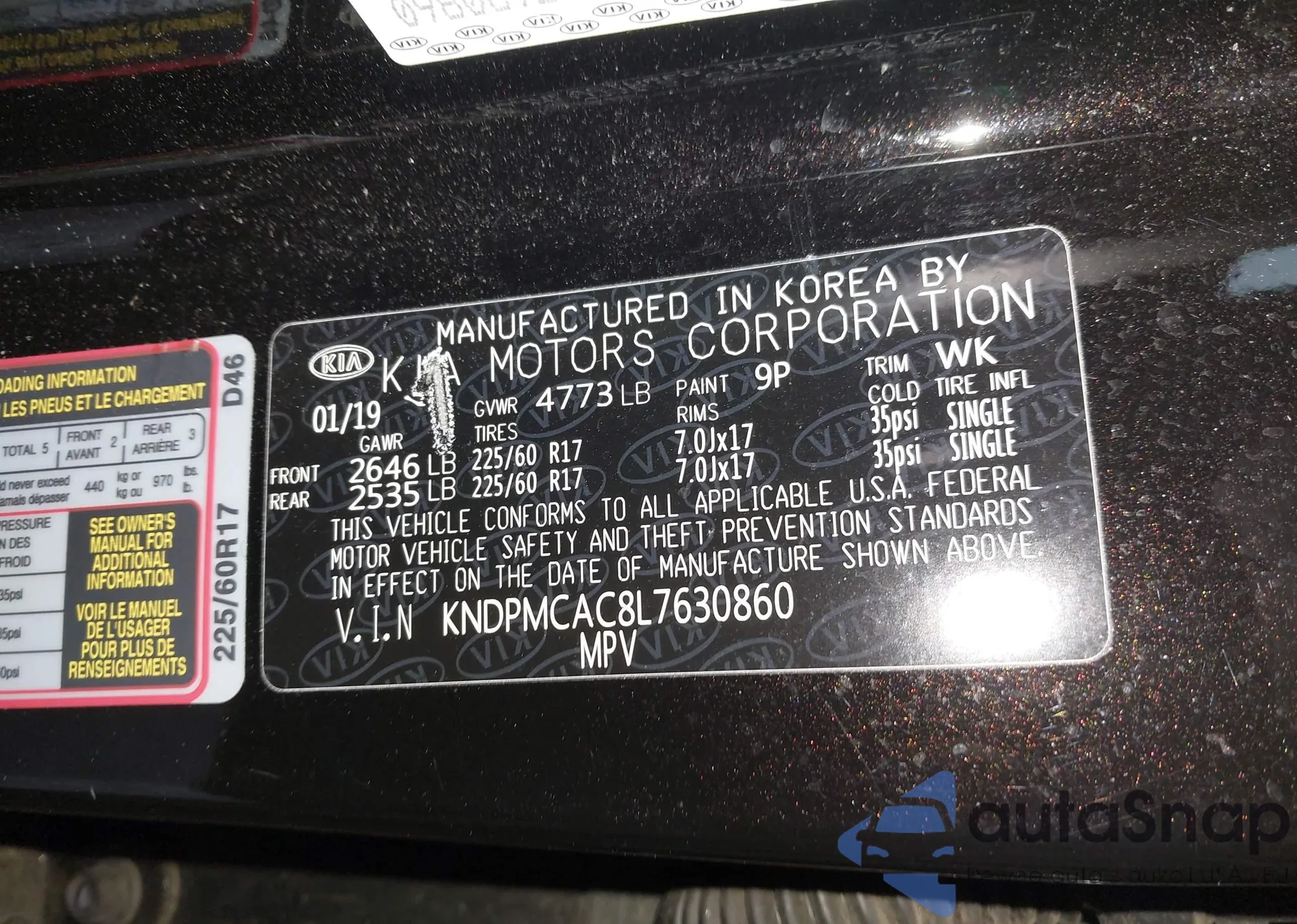 • VIN: KNDPMCAC8L7630860