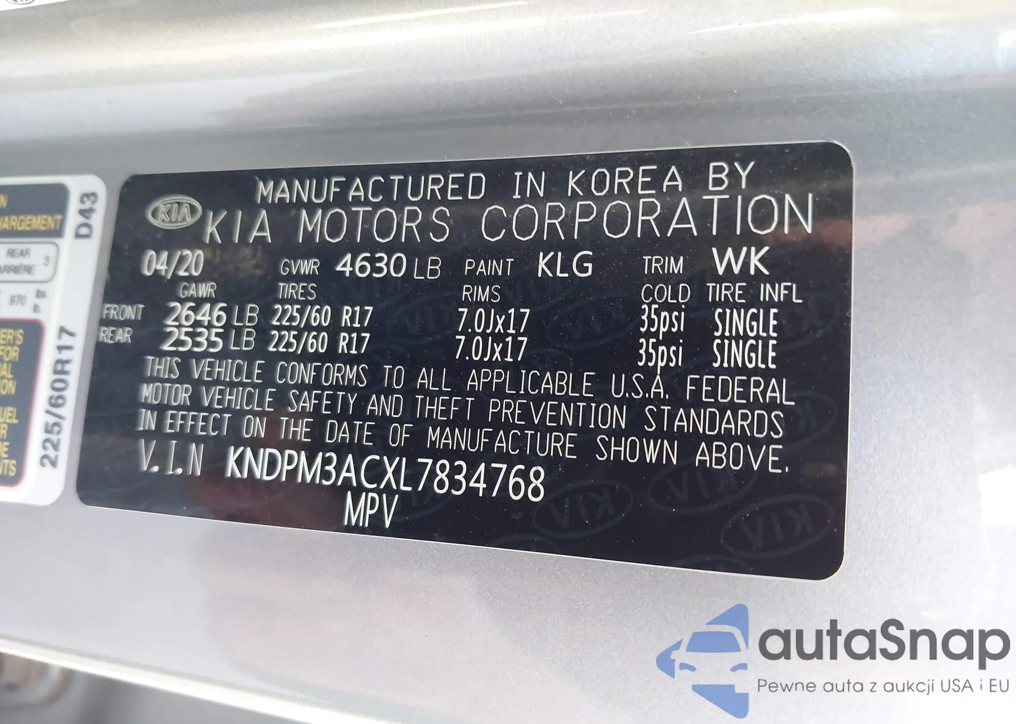 • VIN: KNDPM3ACXL7834768