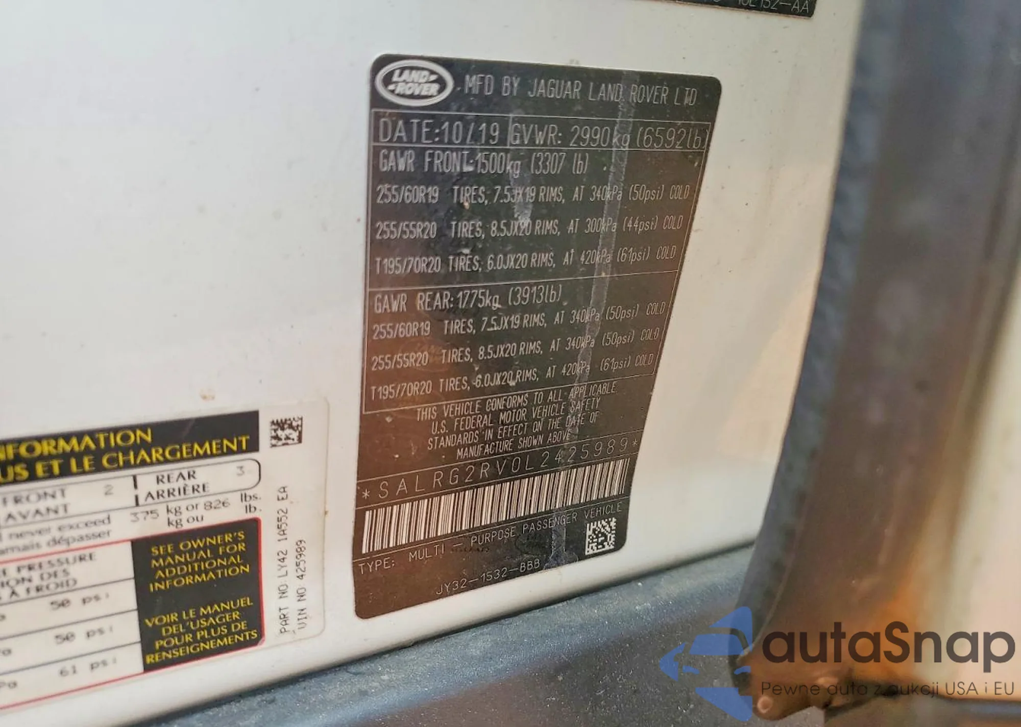 Автомобиль Land Rover Discovery 2020 (VIN SALRG2RV0L2425989) продаётся непроверенным продавцом. Рекомендуем проверить отчет Carfax и подтвердить возможность регистрации перед покупкой.
