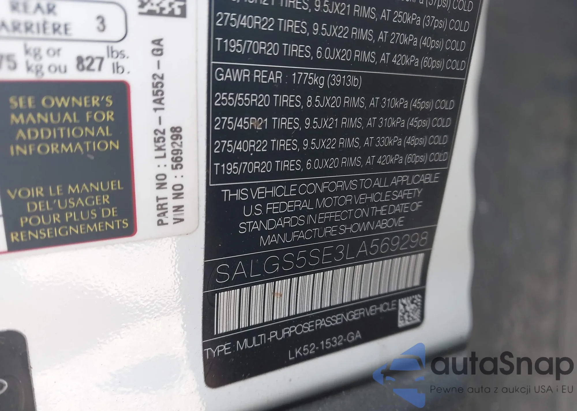 • VIN: SALGS5SE3LA569298