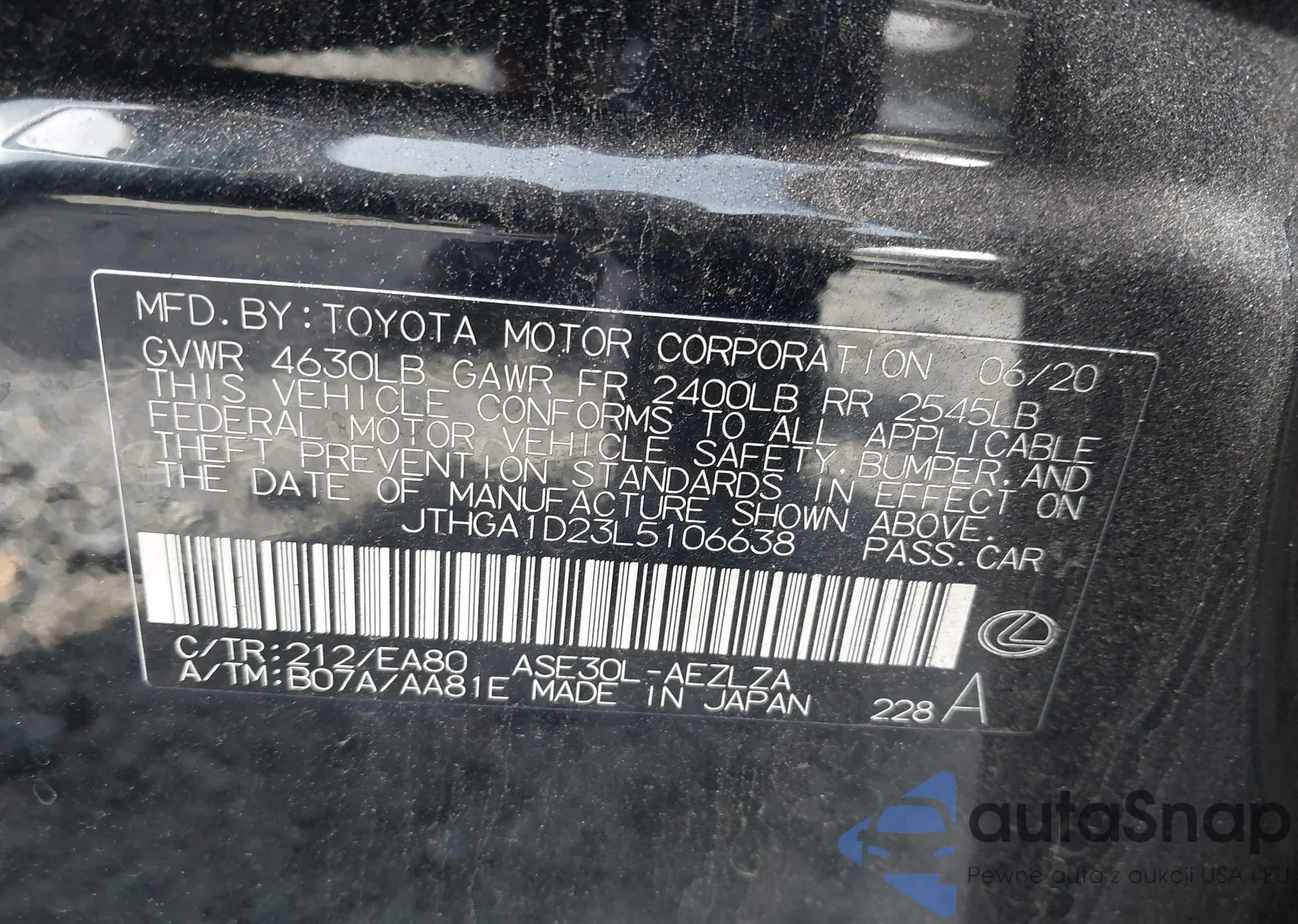 VIN: JTHGA1D23L5106638