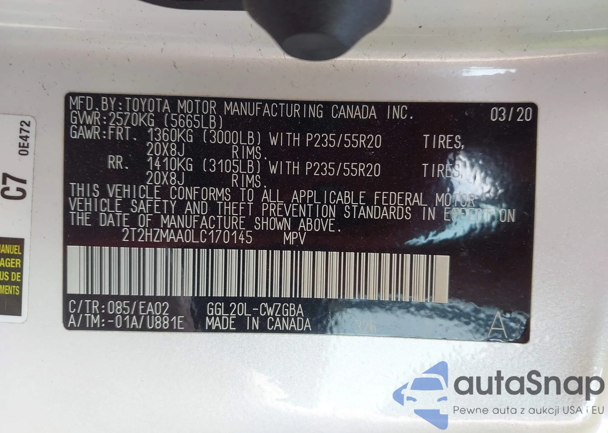 2T2HZMAA0LC170145 IAAI