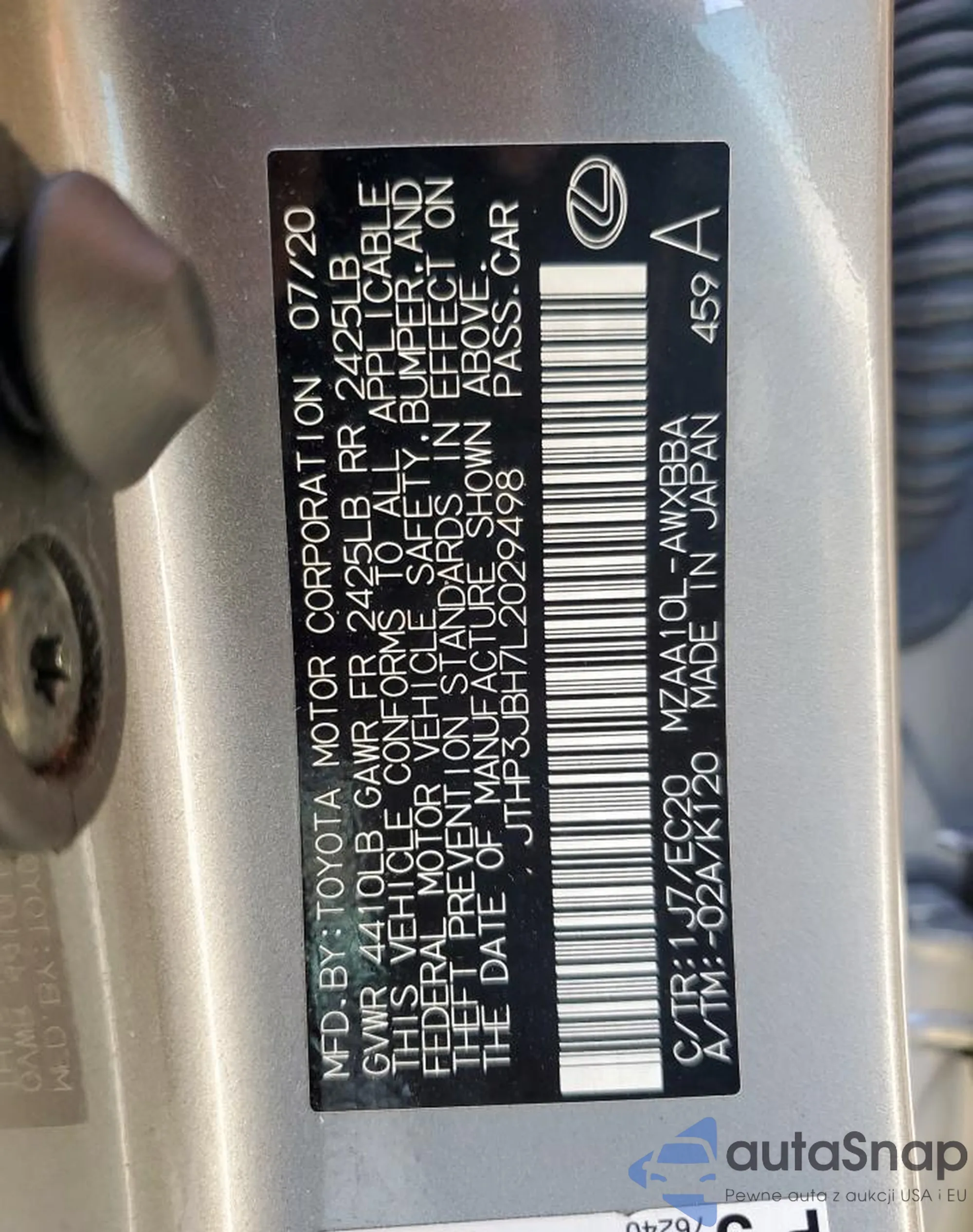 VIN: JTHP3JBH7L2029498