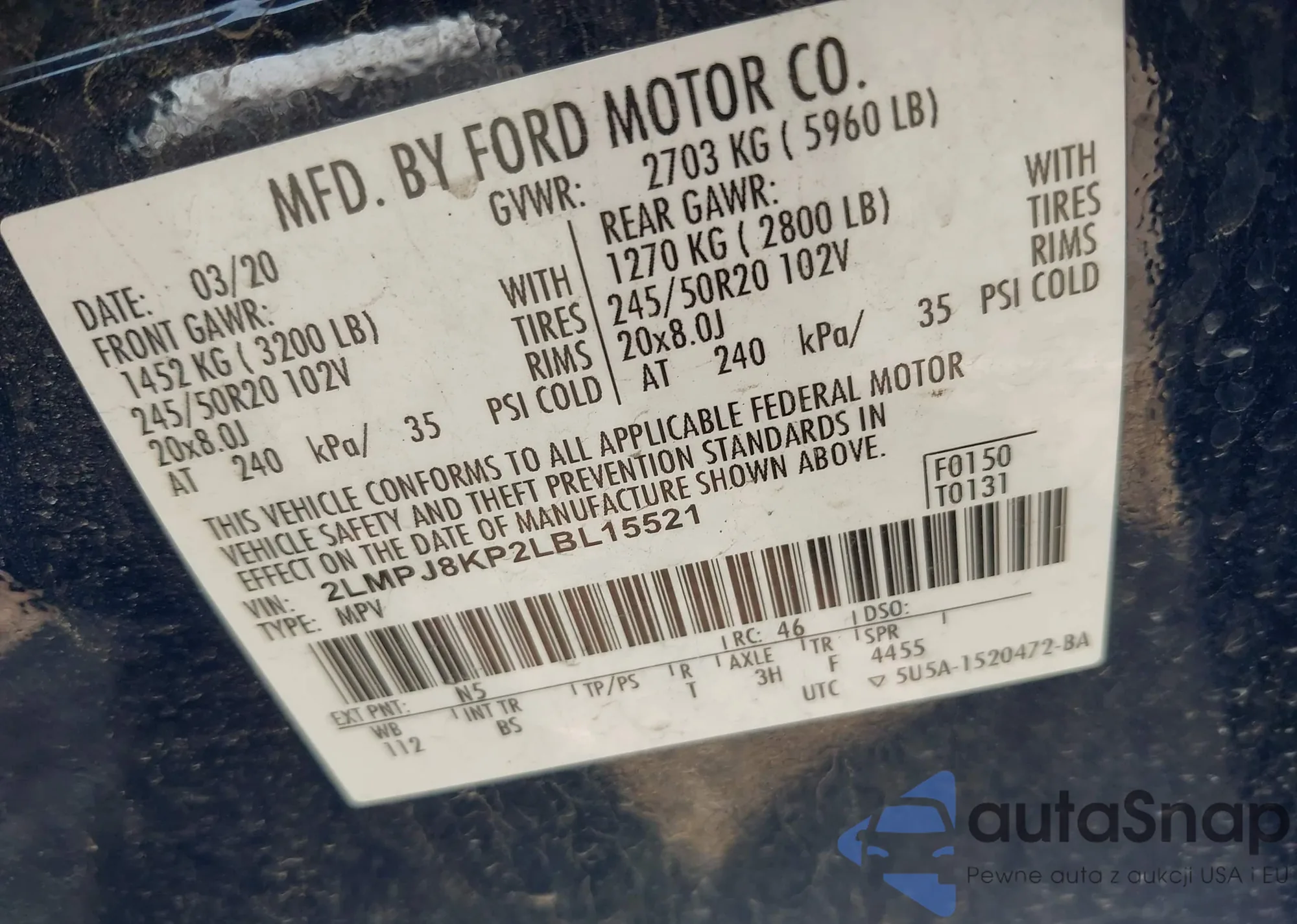 VIN: 2LMPJ8KP2LBL15521