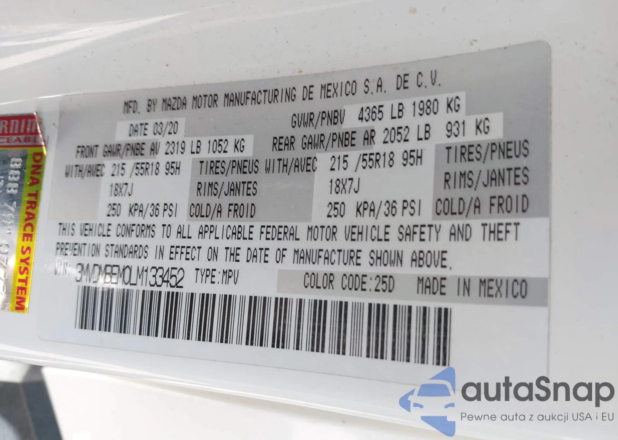 VIN: 3MVDMBEM0LM133452