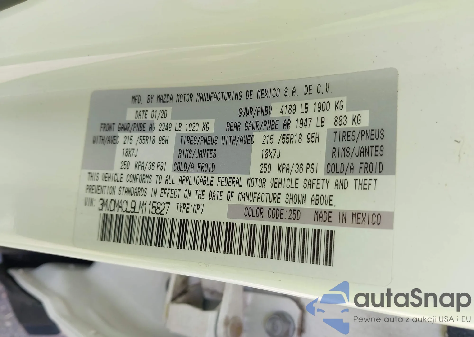 VIN: 3MVDMACL9LM115827