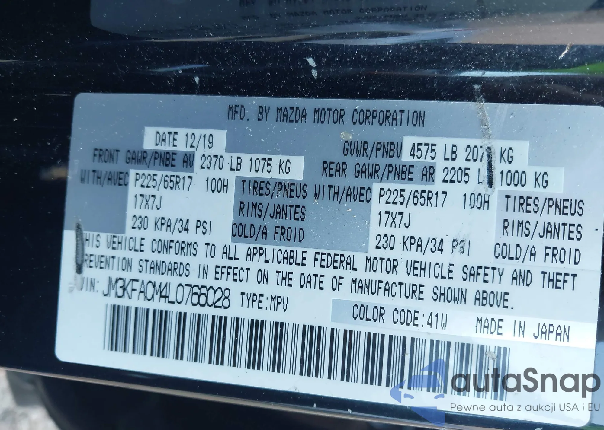 Автомобиль Mazda CX-5 2020 (VIN JM3KFACM4L0766028) ранее не участвовал в торгах. Документы чистые, пробег соответствует или ниже среднего по рынку. Продаётся страховой компанией — рекомендуем покупку. Доставка в порт займет около 6–8 недель.