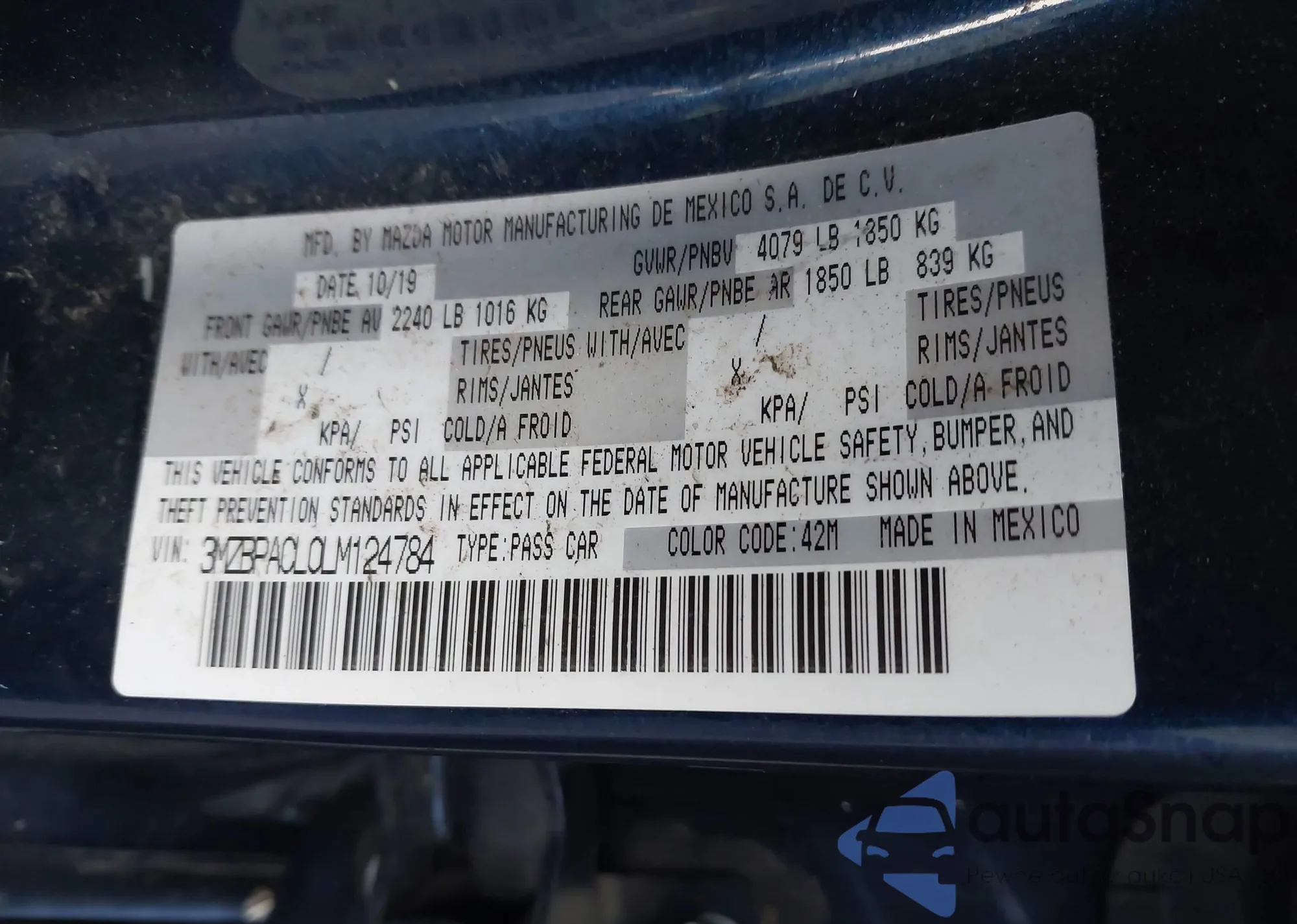 Автомобиль Mazda 3 2020 (VIN 3MZBPACL0LM124784) ранее не участвовал в торгах. Документы чистые, пробег соответствует или ниже среднего по рынку. Продаётся страховой компанией — рекомендуем покупку. Доставка в порт займет около 6–8 недель.