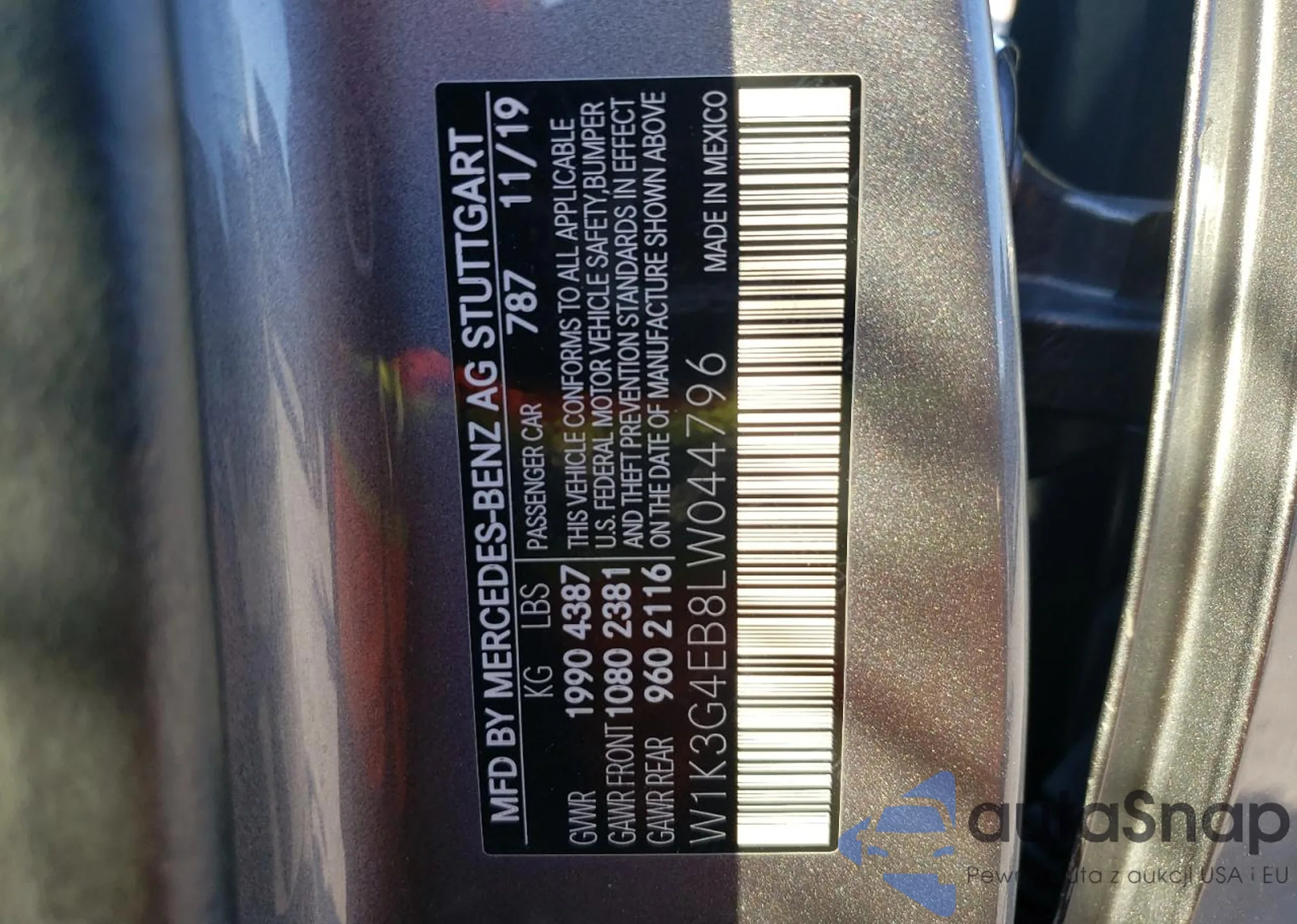 • VIN: W1K3G4EB8LW044796