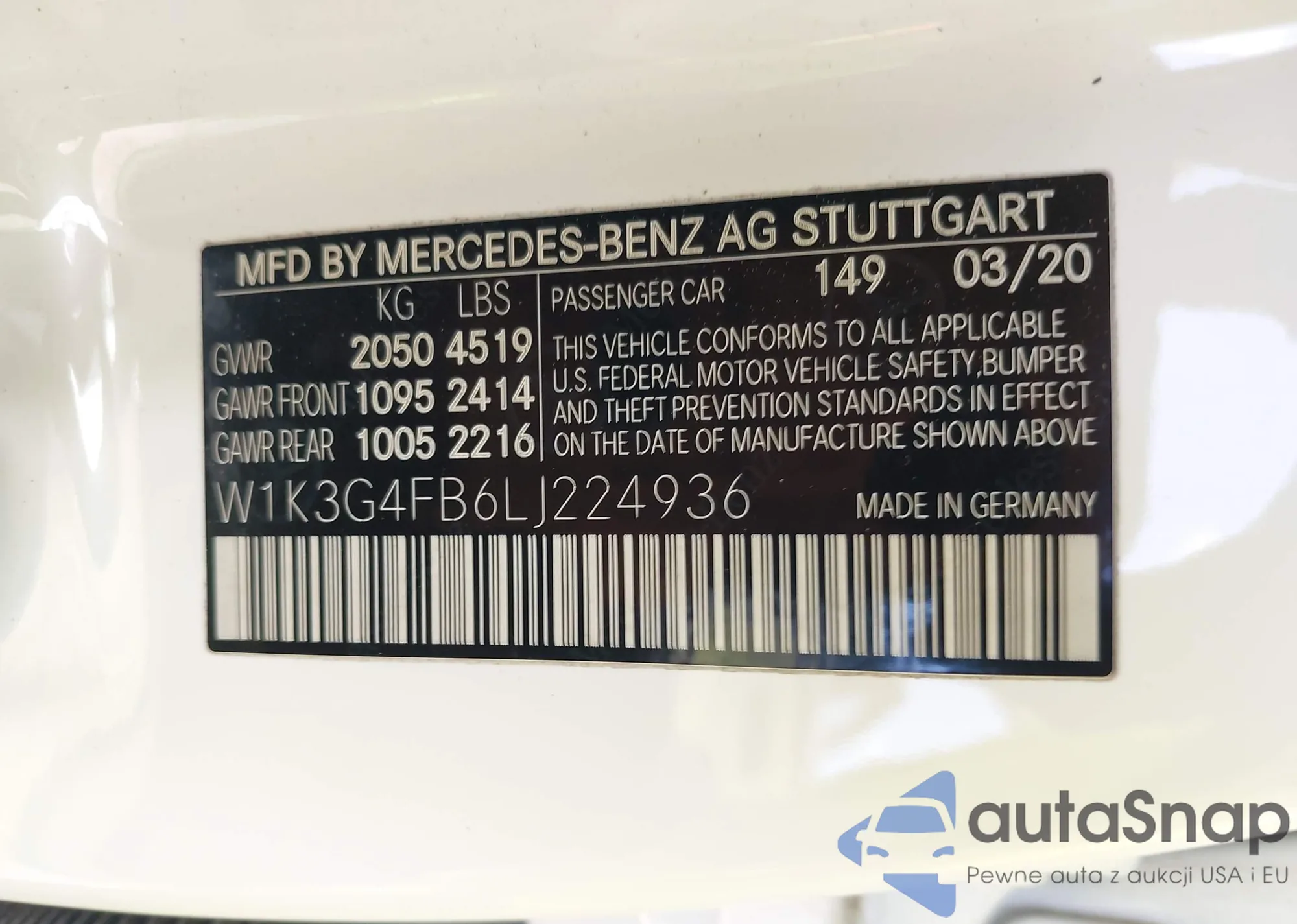 VIN: W1K3G4FB6LJ224936