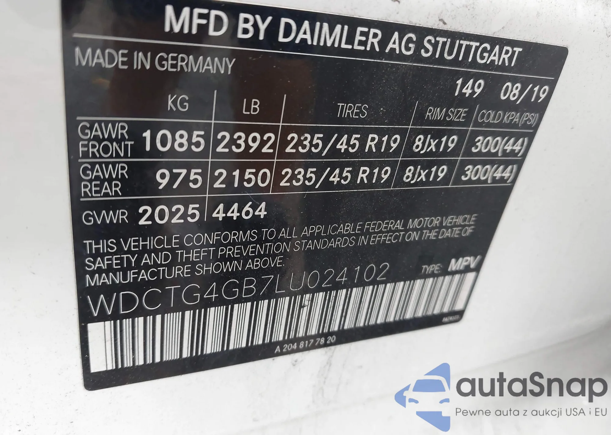 VIN: WDCTG4GB7LU024102